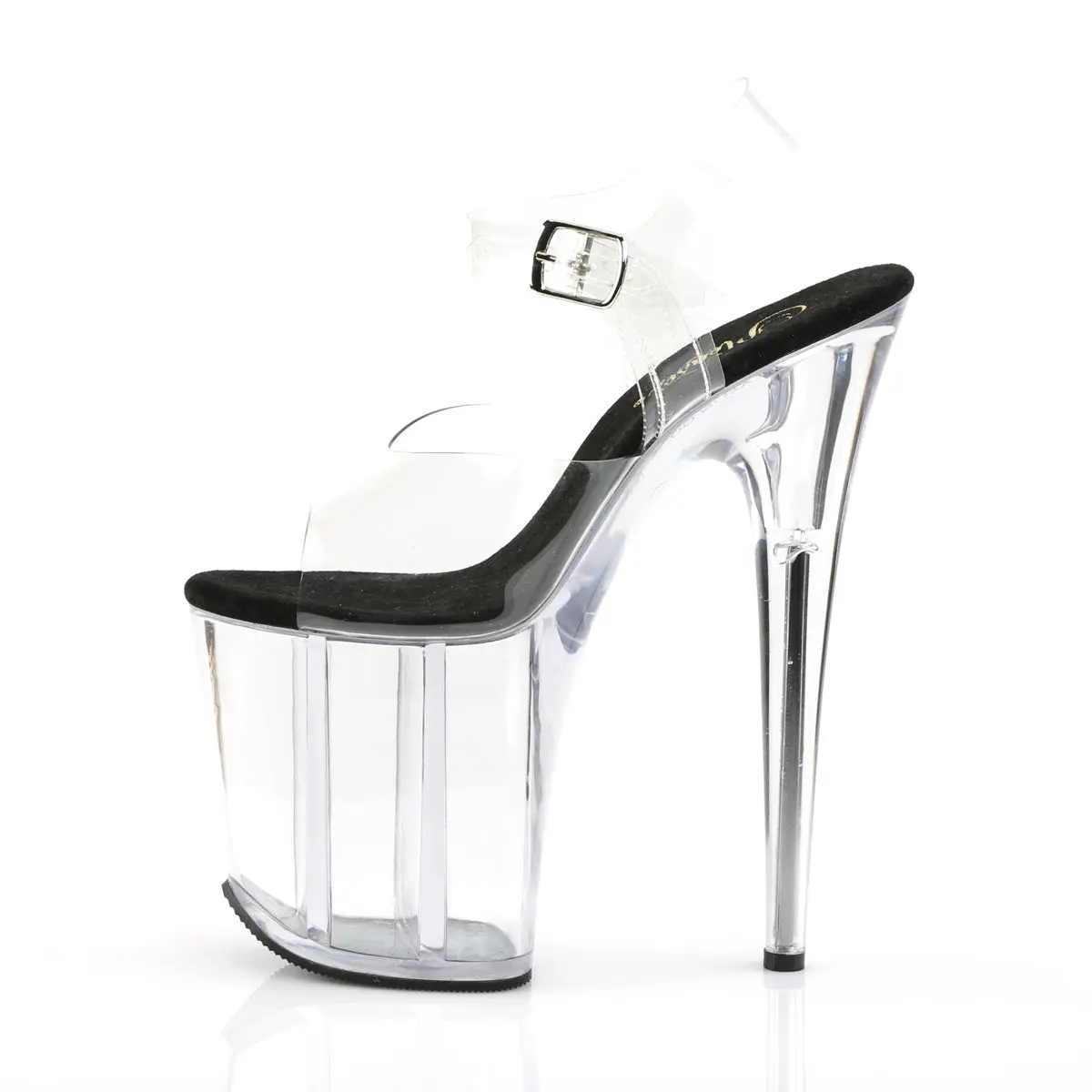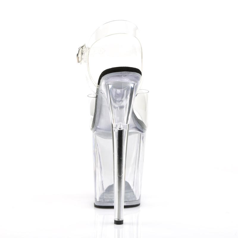 Be ready to turn heads with the Flamingo-808 ankle strap sandal - a dazzling combination of style and height. With an 8-inch stiletto heel and 4-inch platform, these shoes offer a bold and confident stride. The clear front strap and ankle strap create a minimalistic, sexy look, while the attractive color options add a playful touch to your attire. Make a statement with the Flamingo-808.