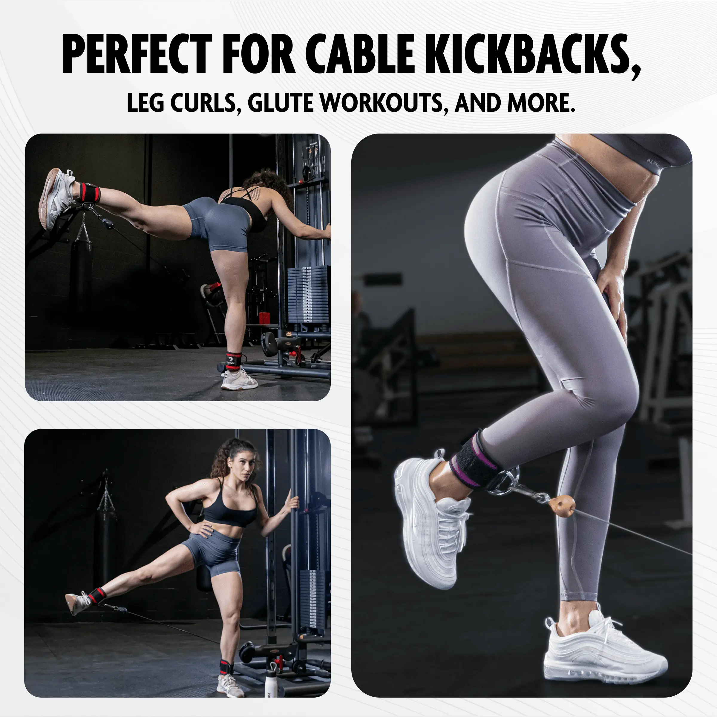 Crafted with 8mm neoprene padding and durable nylon material, these straps provide exceptional comfort and stability during exercises like cable kickbacks, leg curls, and glute workouts, ensuring a secure fit and reducing discomfort.
