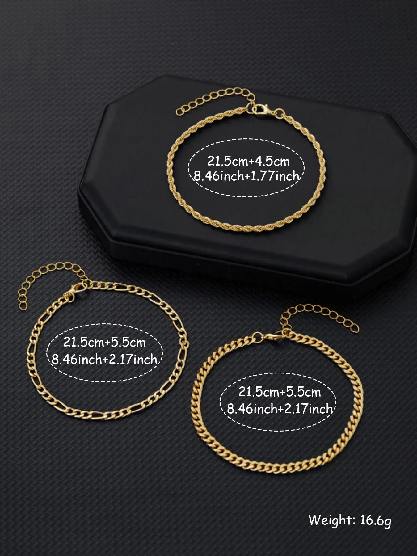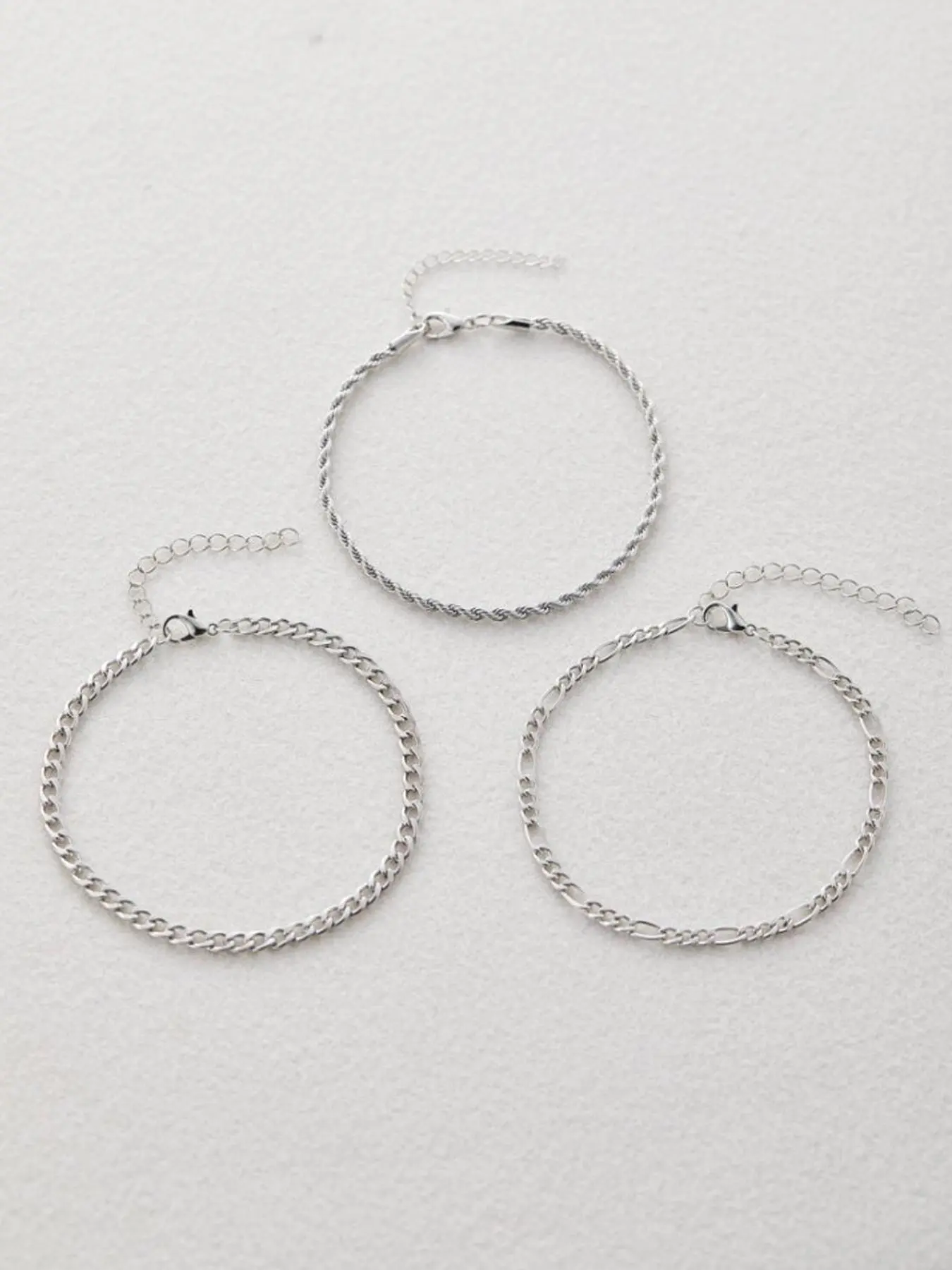 Wore 2 of the 3 and they broke. One broke while showering and the other one broke in the middle of the night while I was asleep sleep. Woke up and it was broken. Also it is tarnishing. Haven’t even had long not even 2 weeks. Disappointed!