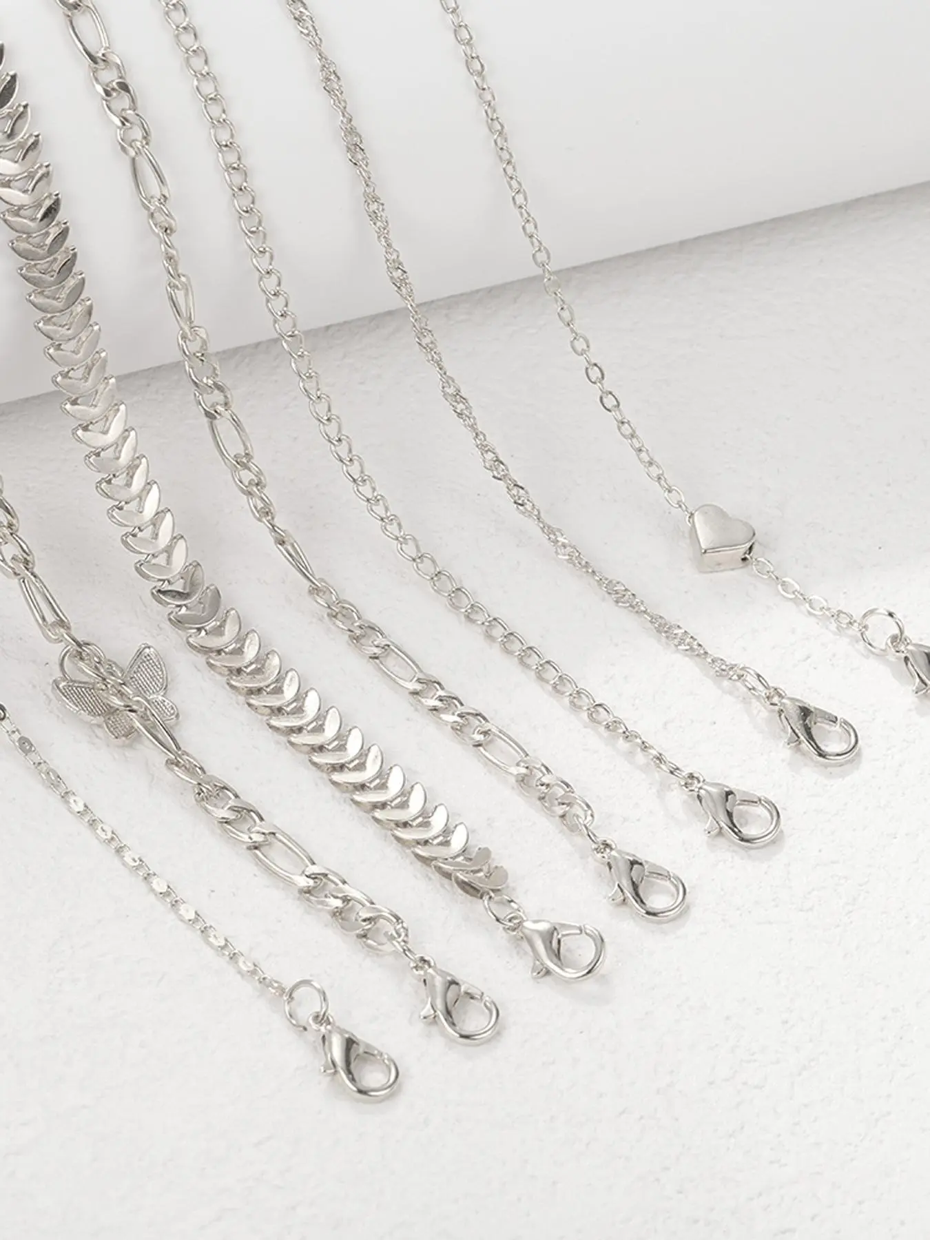 Women's Fashion Charming Butterfly & Heart Shape Anklet Set, Plain Elegant Zinc Alloy Anklet, Trendy Body Jewelry for Women & Girls, Holiday Gifts
