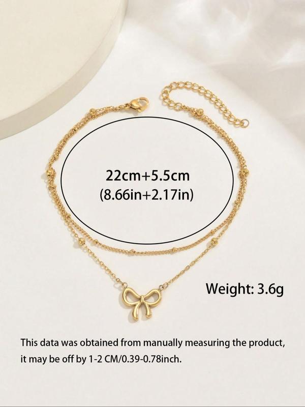 5. Fashion Double Layer Bow Design Anklet, Boho Anklet, Stainless Steel Foot Jewelry for Women & Girls, Elegant All-match for Daily Wear