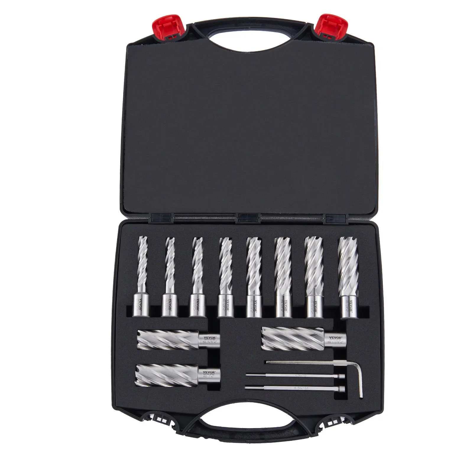 5. VEVOR Annular Cutter Set, TikTokShopBlackFriday, 13 pcs Weldon Shank Mag Drill Bits, 7/16" to 1-1/16" Cutting Diameter, 2" Cutting Depth, M2AL HSS, with 2 Pilot Pins, Hex Wrench and Portable Case, for Using with Magnetic Dr