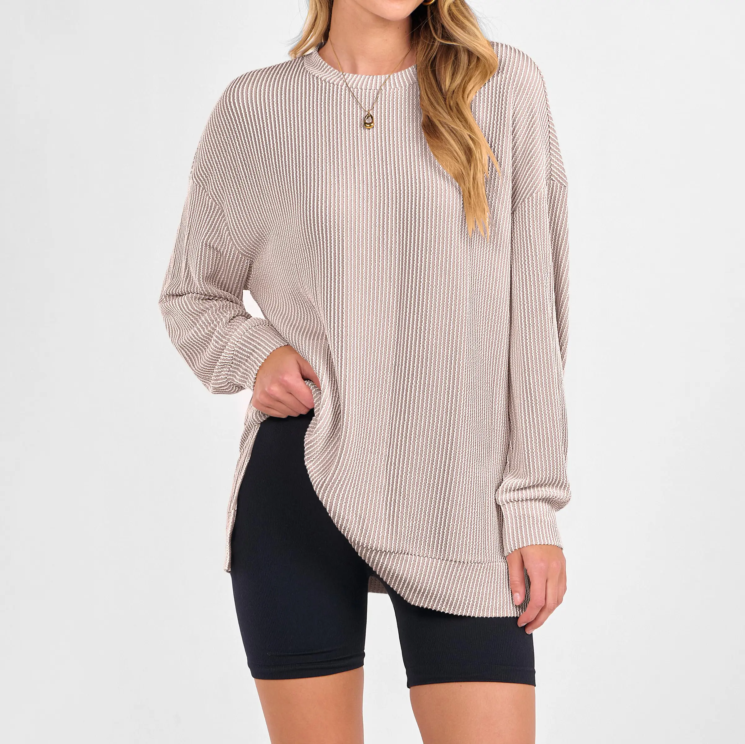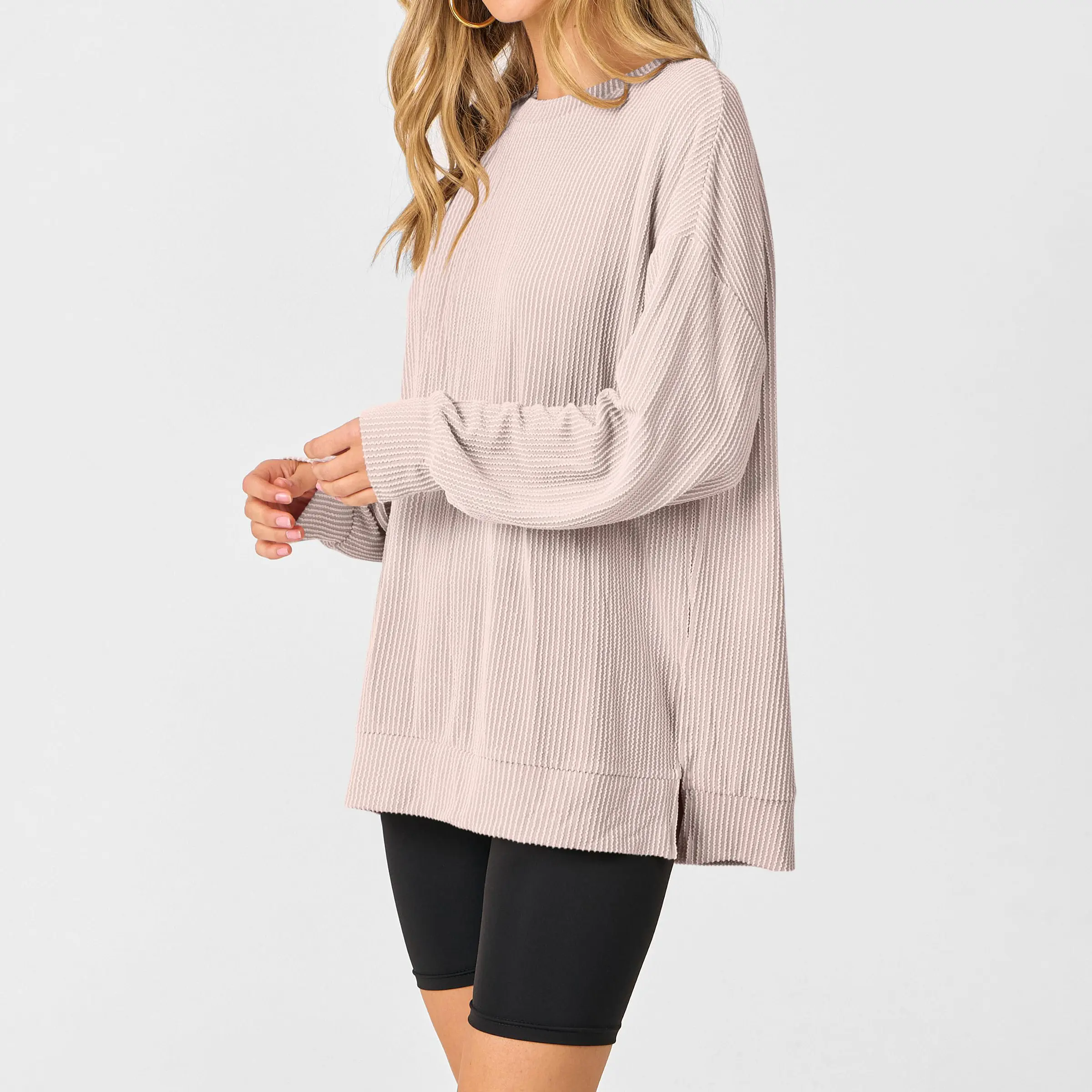 ·Features - Women's Casual ribbed blouse, crew neck, oversized Sweatshirt,long sleeve shirt,knitted fabric sweater. The women tops great for casual daily wear, school, office, work,shopping,vacation, travel,going out.The fashion fall sweater goes well with jeans, shorts, leggings, or skirts.