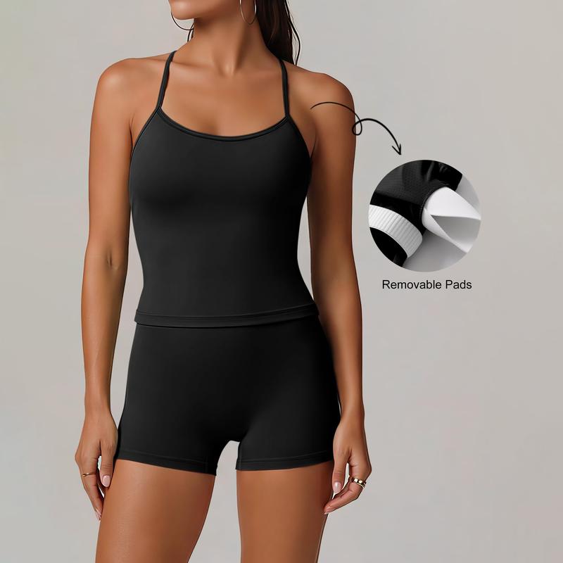 ·Color Notice-Please note:Actual colors may slightly vary due to lighting conditions and screen display differences. For accurate color reference, we recommend viewing under natural daylight (D65 standard).This 2 Piece athletic sets comes with cross back tank tops,high waist booty lifting shorts ,sports style.