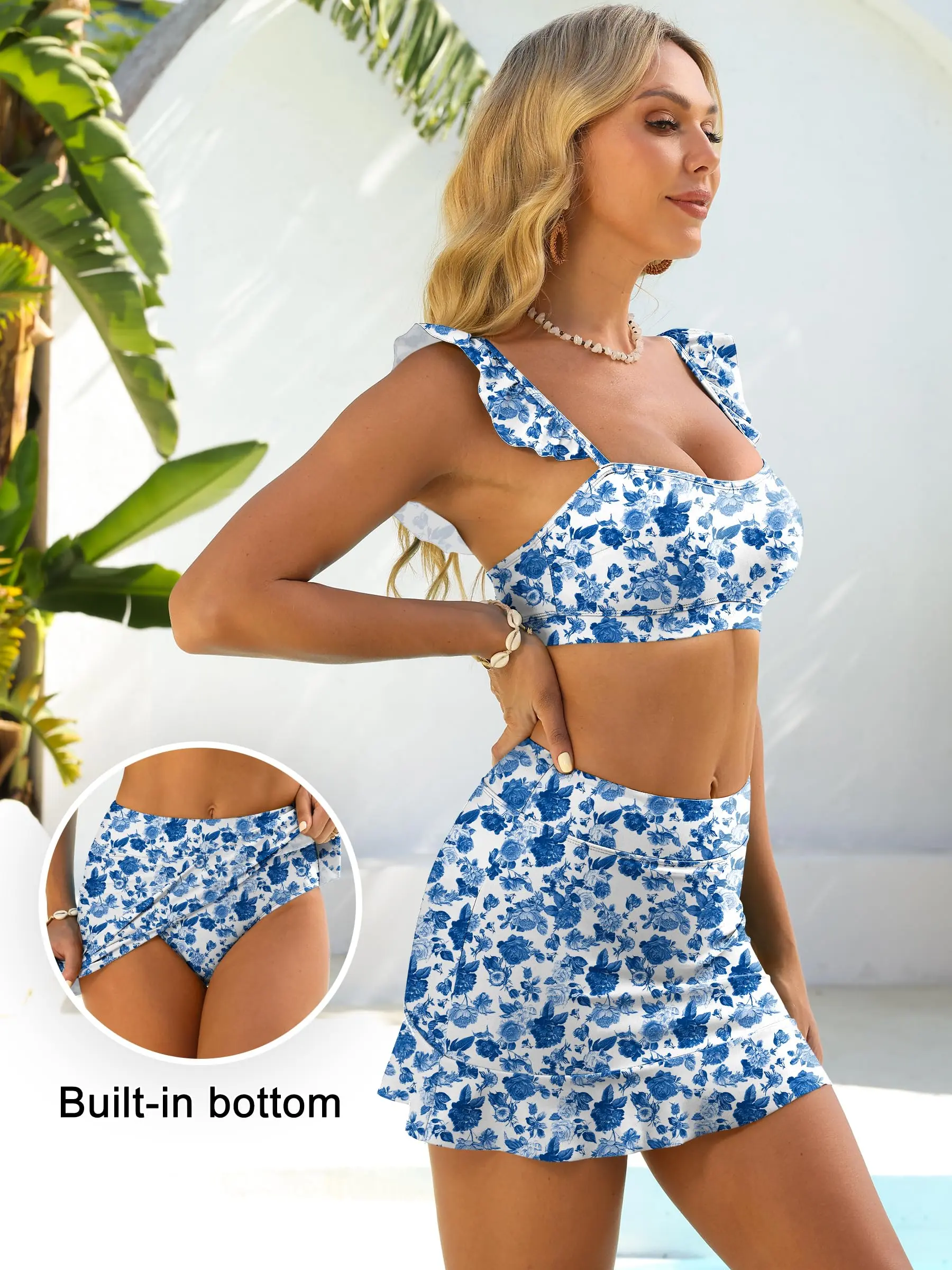 ·Features -This bikini set features a ruffled strap top and a versatile skirt with built-in bottoms, making it perfect for both swimming and sunbathing without any worries.Perfect for summer beaches, honeymoons, cruises, pool parties, vacations, and Hawaii.