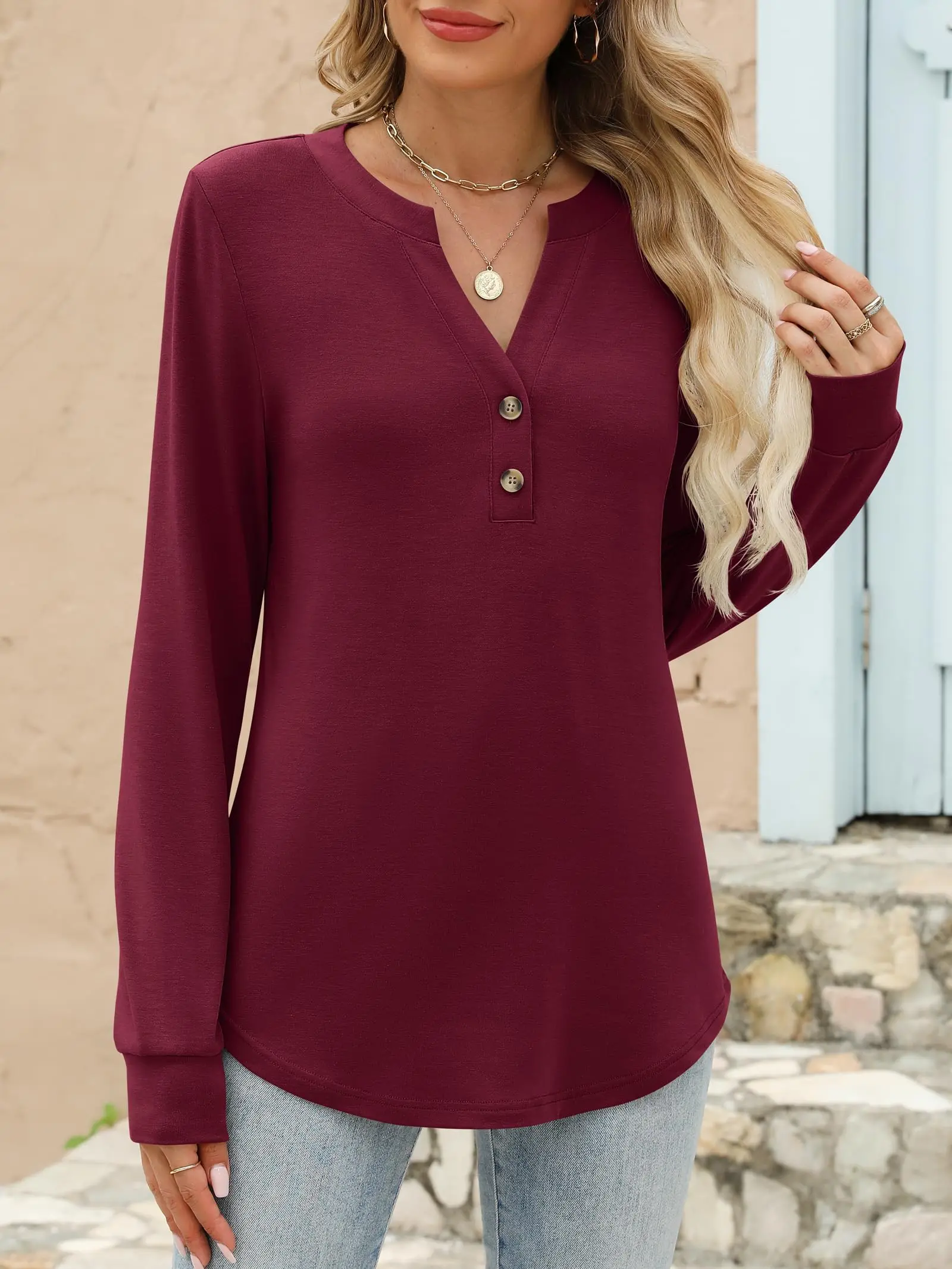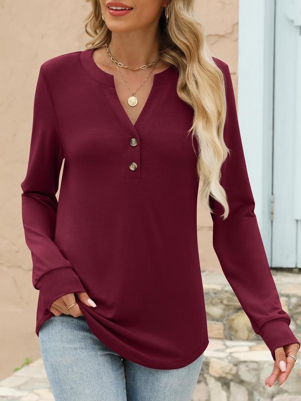 ·Features - Button down casual henley shirts for women with long sleeves, v neck t shirts for women, plain colors, and loose fitting pullover tops. These long sleeve blouses are suitable for spring and autumn, perfect for casual outings, going out, travel, holidays, vacations, daily wear, shopping, and more.