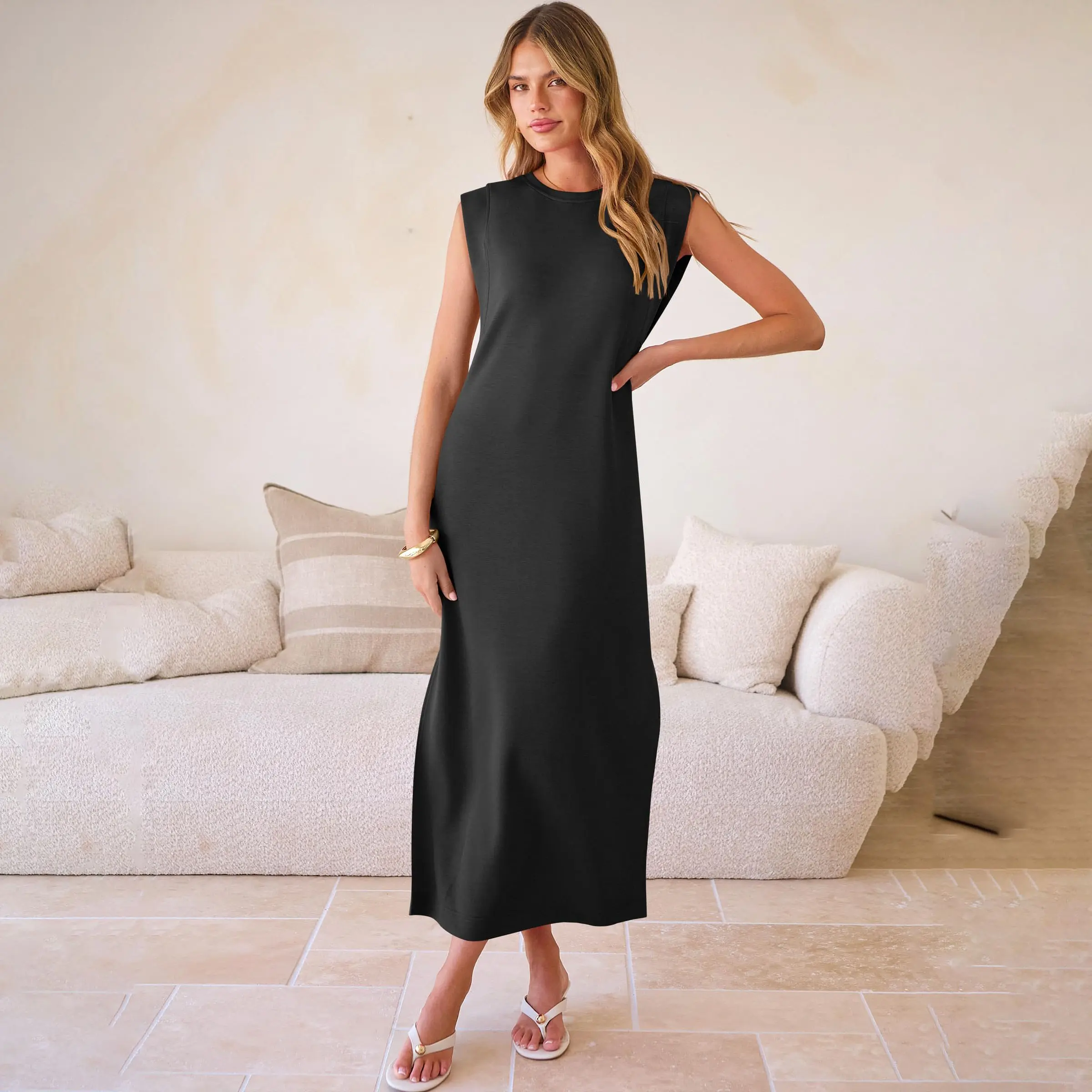 ·Fit Type - The women's long dress is comfy with a regular fit. stylish, fashionable, crew neck, sleeveless, ankle length. The side slit hem accentuates your curves, making you look charming.