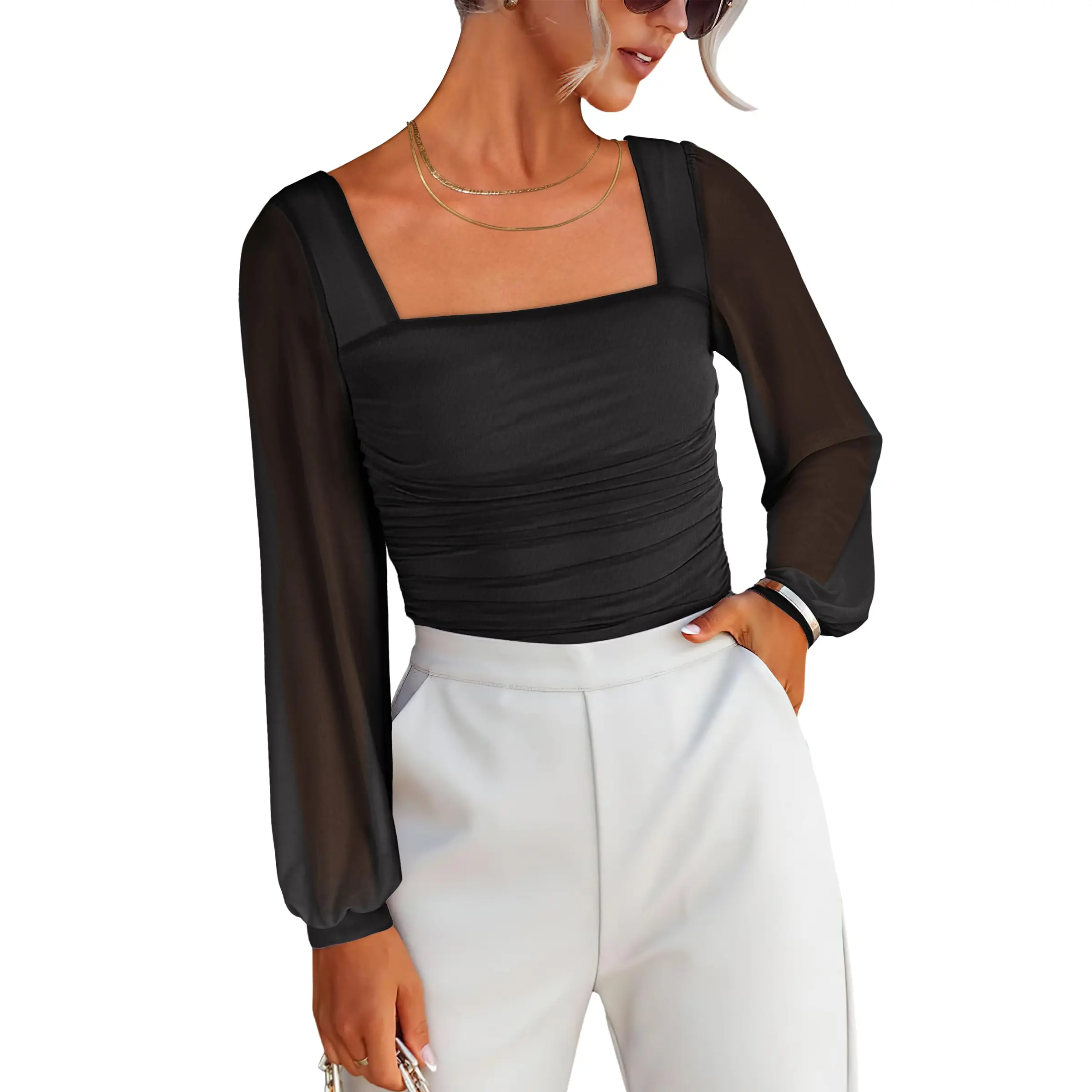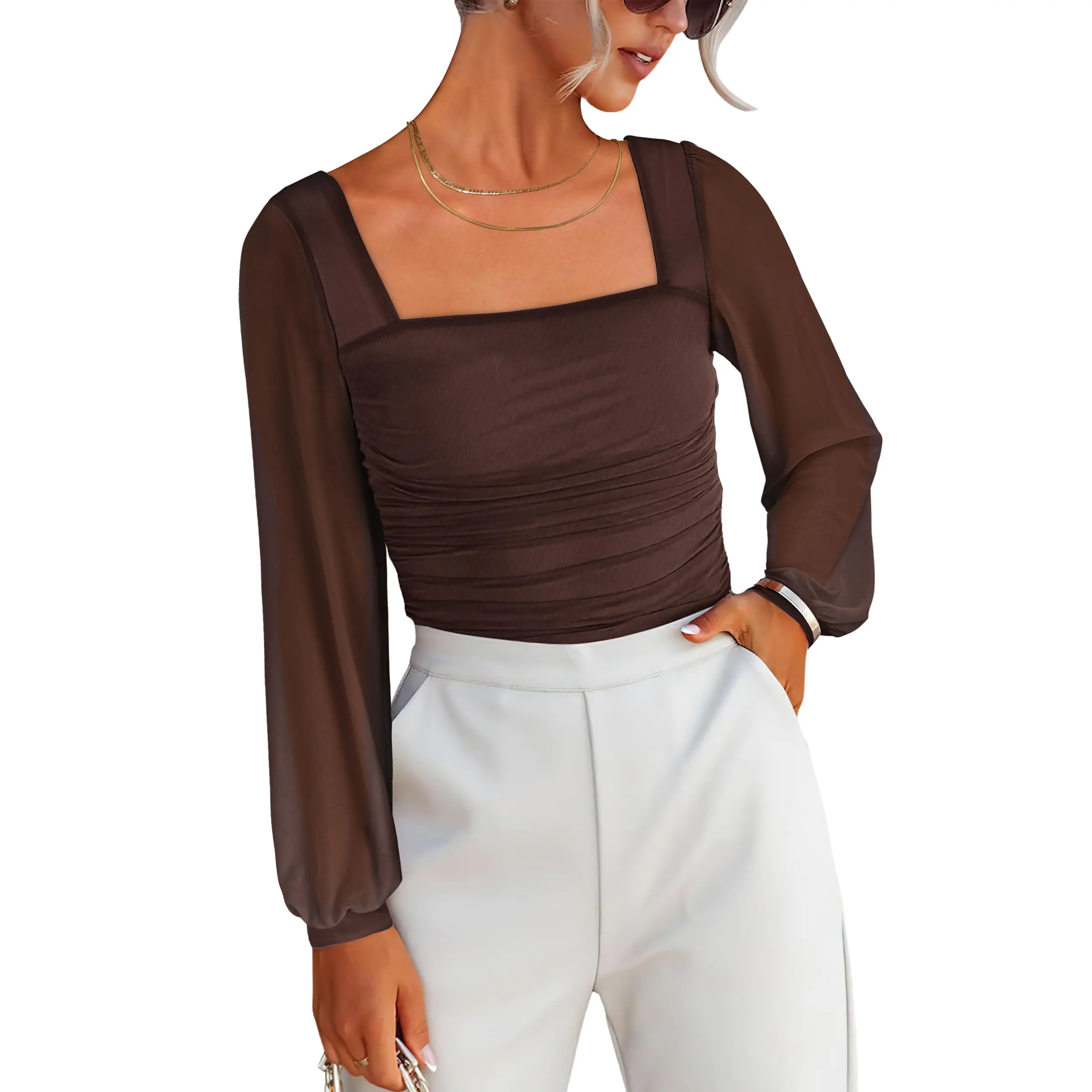 ·Features - Women's double-lined mesh slim fitted tops with square neckline and long puff sleeves. These tops pair well with jeans or skirts, making them ideal for Spring, Fall, Winter, and diverse occasions—from daily wear and casual outings to parties/clubs, formal dinners, dates, and vacations. Their effortless style ensures you stand out in any setting.