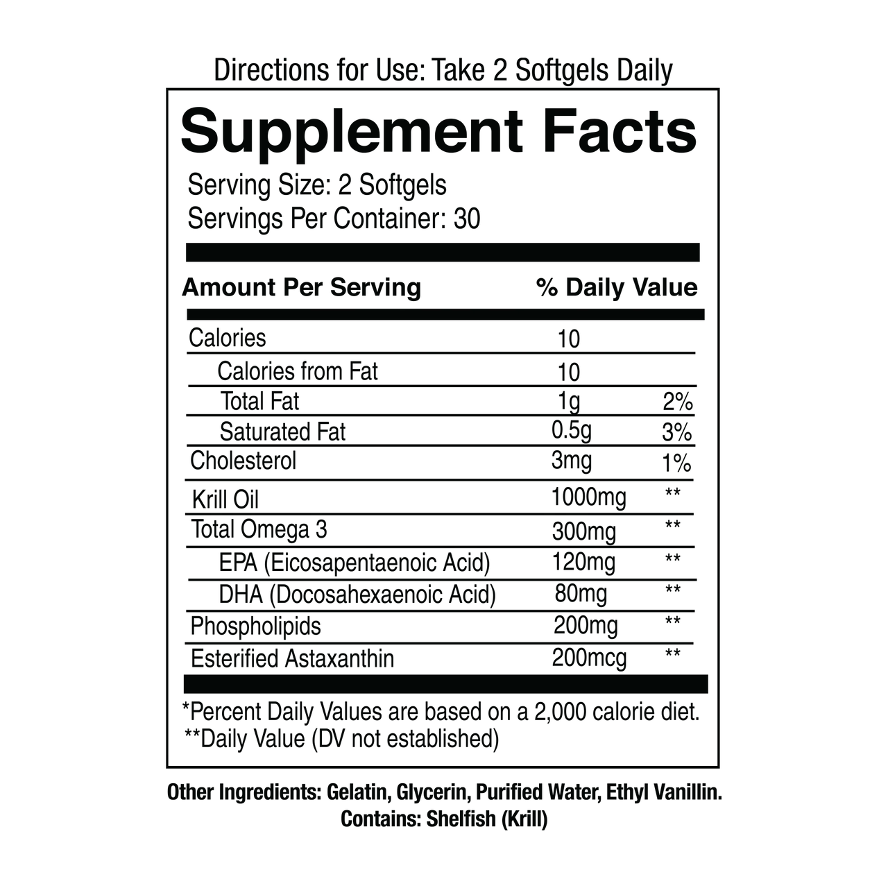 ·Serving Size: 2 softgels (1000mg per serving)