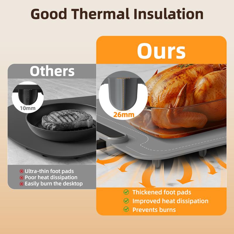 ·Simple 3-Temp Settings & Fast Heating:Effortless operation! Choose from Low (140°F), Medium (176°F), or High (212°F) with a single button. It heats up rapidly, providing quick and consistent warmth to keep your meals perfectly served without complexity.