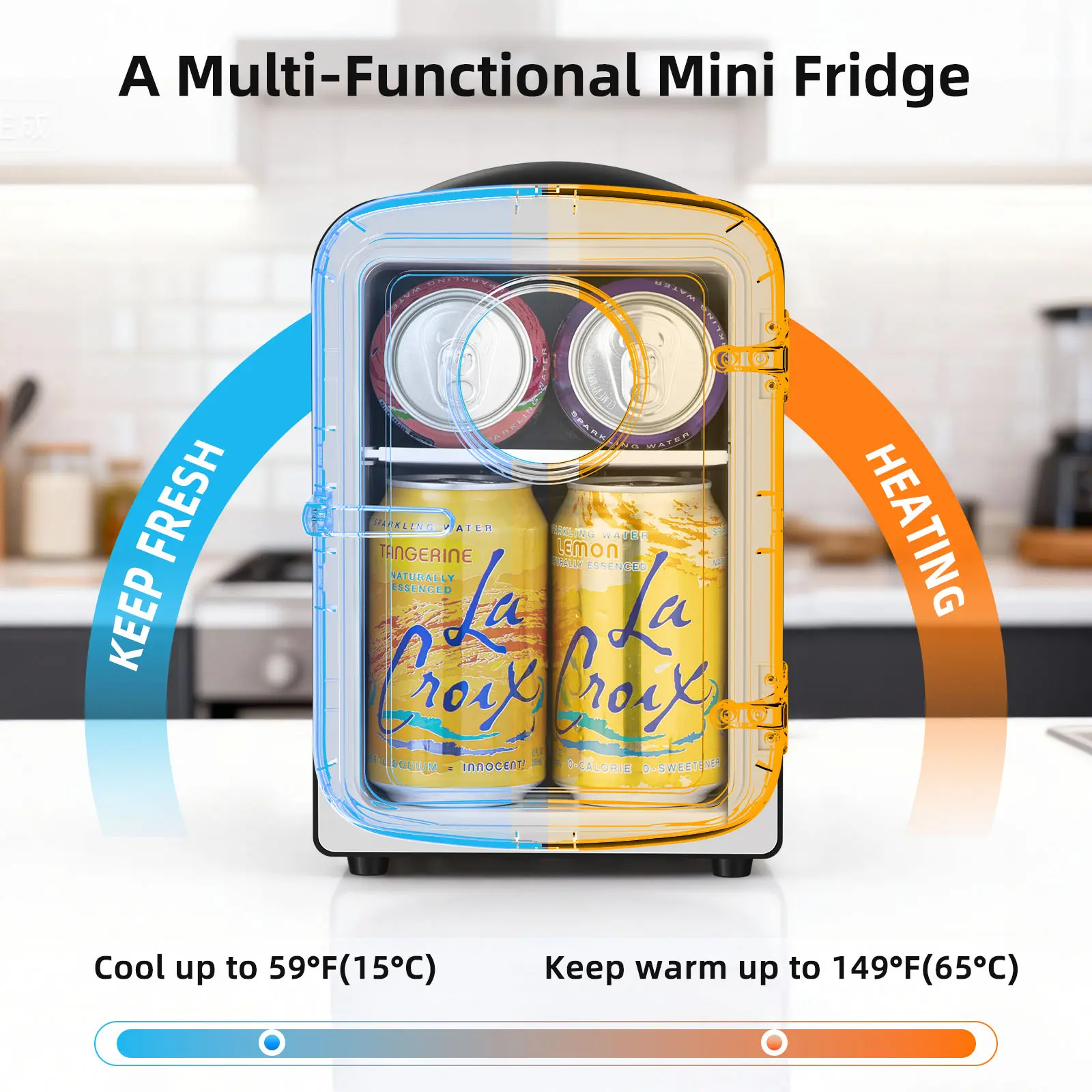 ·Dual-Temperature Versatility: This mini fridge is more than just a cooler. It efficiently cools contents 15-20°C below ambient temperature and heats up to 55-65°C, serving as both a portable fridge for cold drinks and a food warmer for meals on the go.