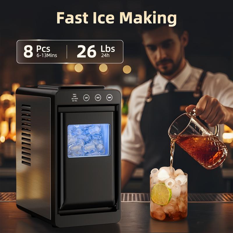 ·【High-Efficiency Output for Continuous Supply】 Equipped with a powerful cooling system, this machine can produce up to 26 pounds of ice per 24 hours. It reliably keeps up with your demand, ensuring an uninterrupted ice supply for daily family use, weekend parties, or outdoor camping adventures.
