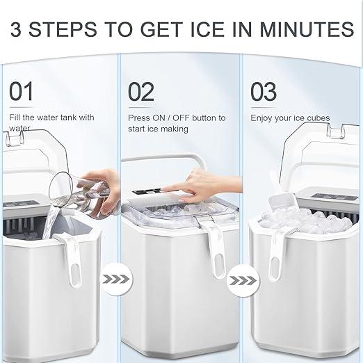 ·FAST MAKER - Antarctic Star countertop ice maker has a powerful and fast ice making capacity. Makes batches of ice cubes in about 26 lbs/day and Makes batches of ice cubes in about 6-13 mins. Don't worry about running out of ice. Especially in the hot summer, you can enjoy drinks and beer with ice cubes. Note: For normal use, please must let machine stand upright for 4 hours before first use.