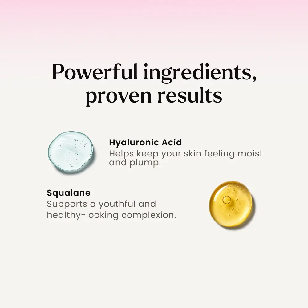 Our Hyaluronic Fusion™ formula delivers the key ingredient, Squalane, deeply into your skin’s surface to support a more youthful and healthy-looking complexion.