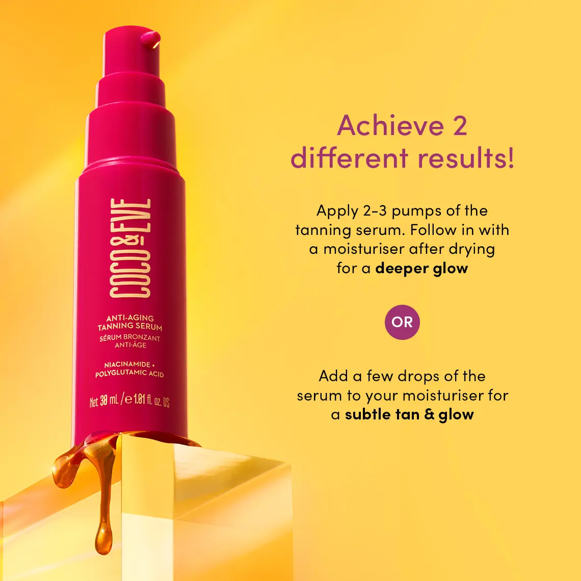 Radiant, youthful tan year-round with our Bali-inspired anti-aging serum powered by Polyglutamic Acid, Niacinamide & antioxidant DHA.
