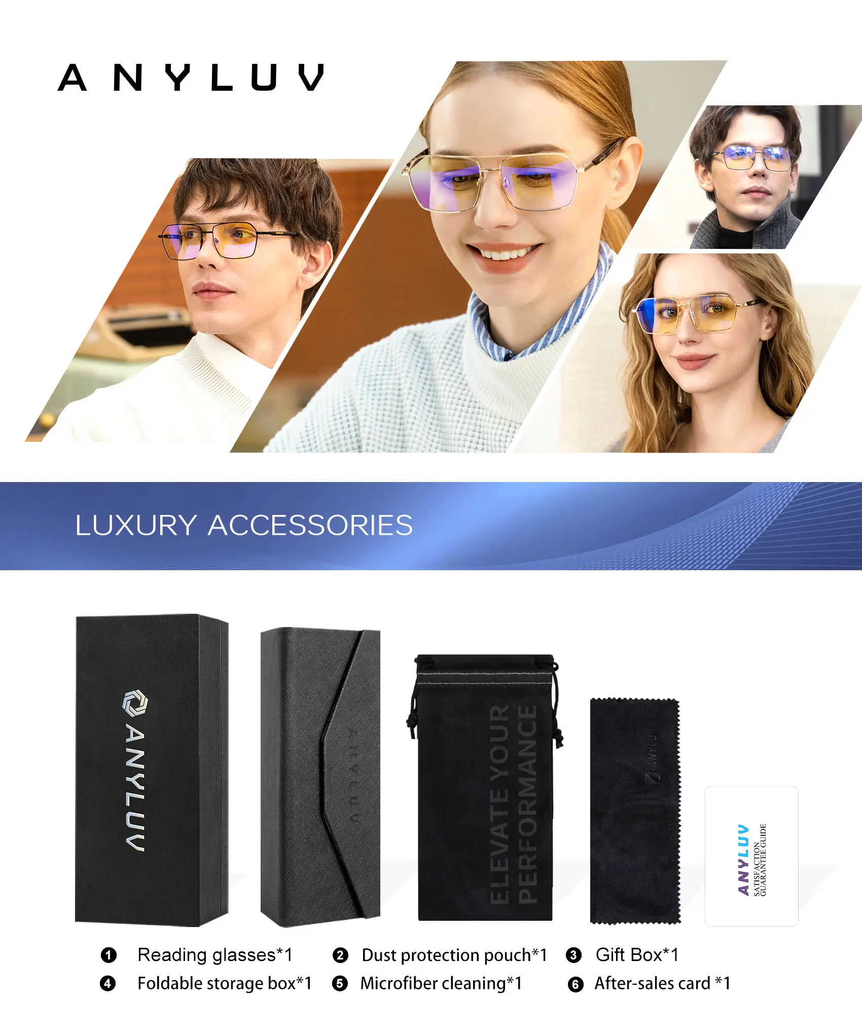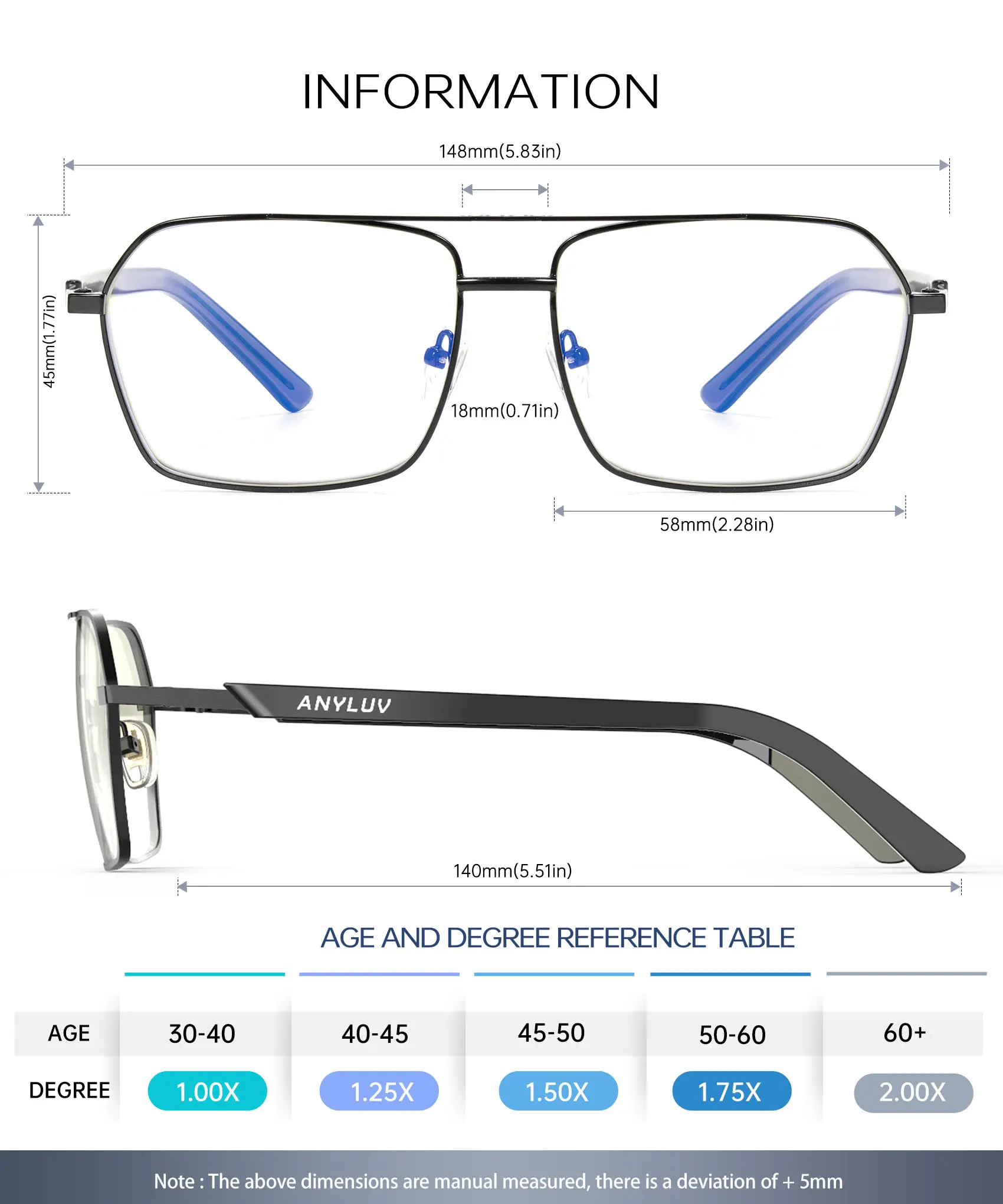 【Various Degree Choices】These blue light reading glasses come in multiple magnification levels (1.00x, 1.25x, 1.50x, 1.75x, 2.00x, 2.25x, 2.50x, 2.75x) for both men and women. No more worrying about blurred vision; see things more clearly when reading small text, using the computer, mobile phone, or looking at a distance.