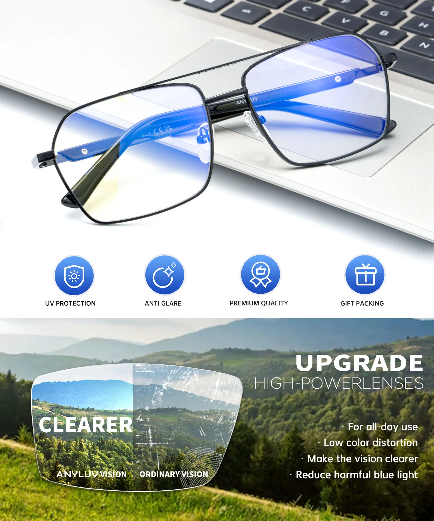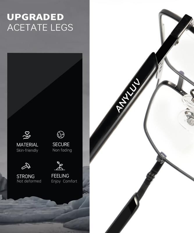 【Premium Metal Material】 This type of blue light reading glasses for men features lightweight metal frames, offering maximum comfort and durability. Designed for extended wear without discomfort, these premium anti-blue light glasses provide excellent tensile strength and temperature tolerance. Ensures optimal protection for your eyes.