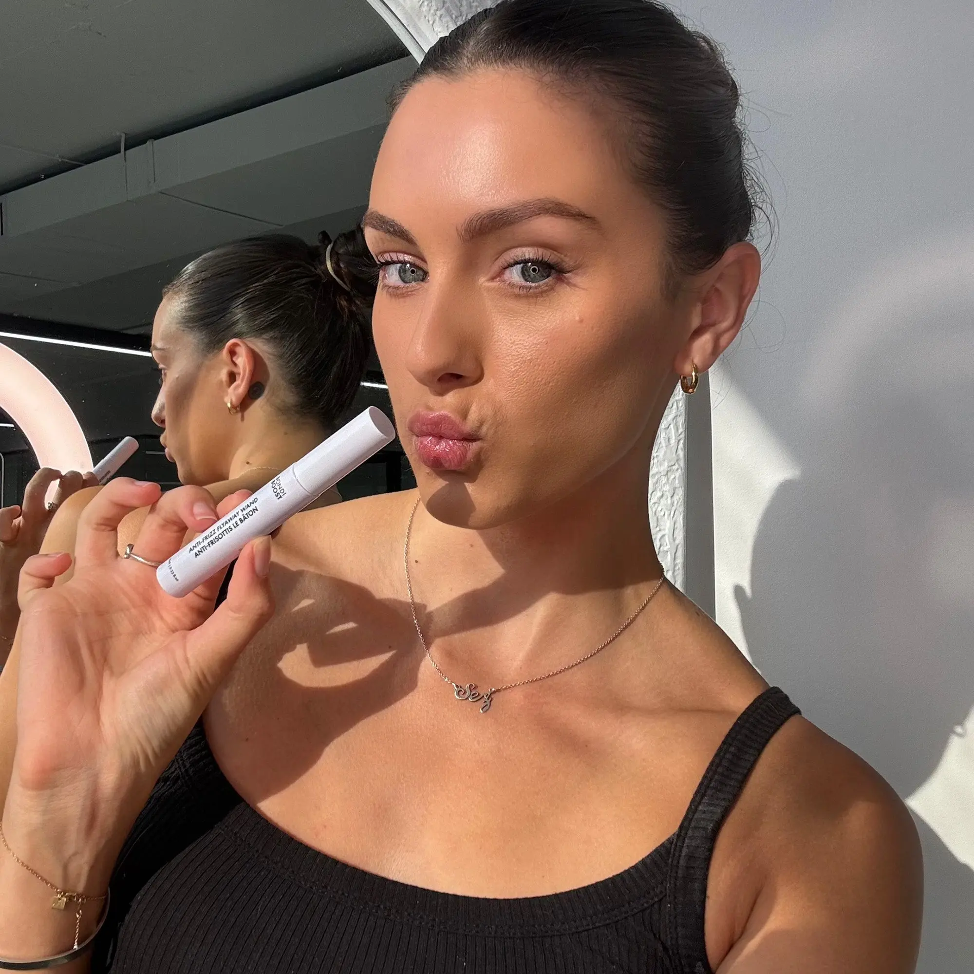 Simple, fast and works well to keep flyaways at bay. Delivery method with the mascara wand design awesome. Small to easily take on trips etc Was glad to see something like this existed. Much better than hair spray.