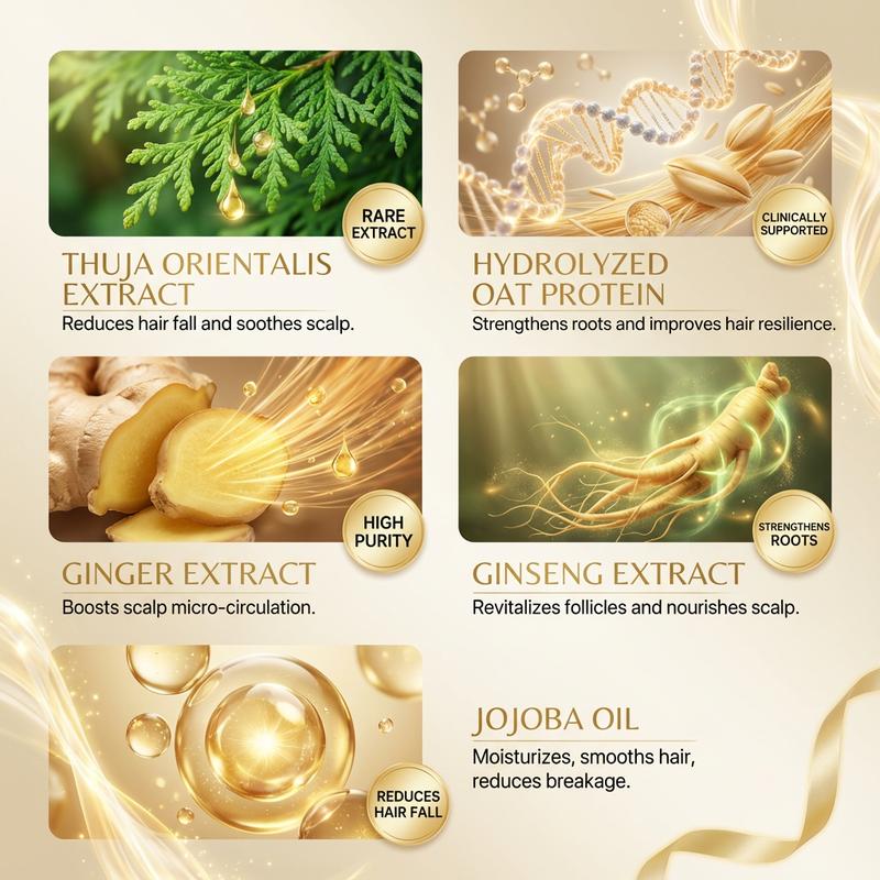 Rich in oat polyphenol alkaloids, can be quickly absorbed by hair strands, repair damaged hair, make hair strong and elastic, not easy to break and fall out
