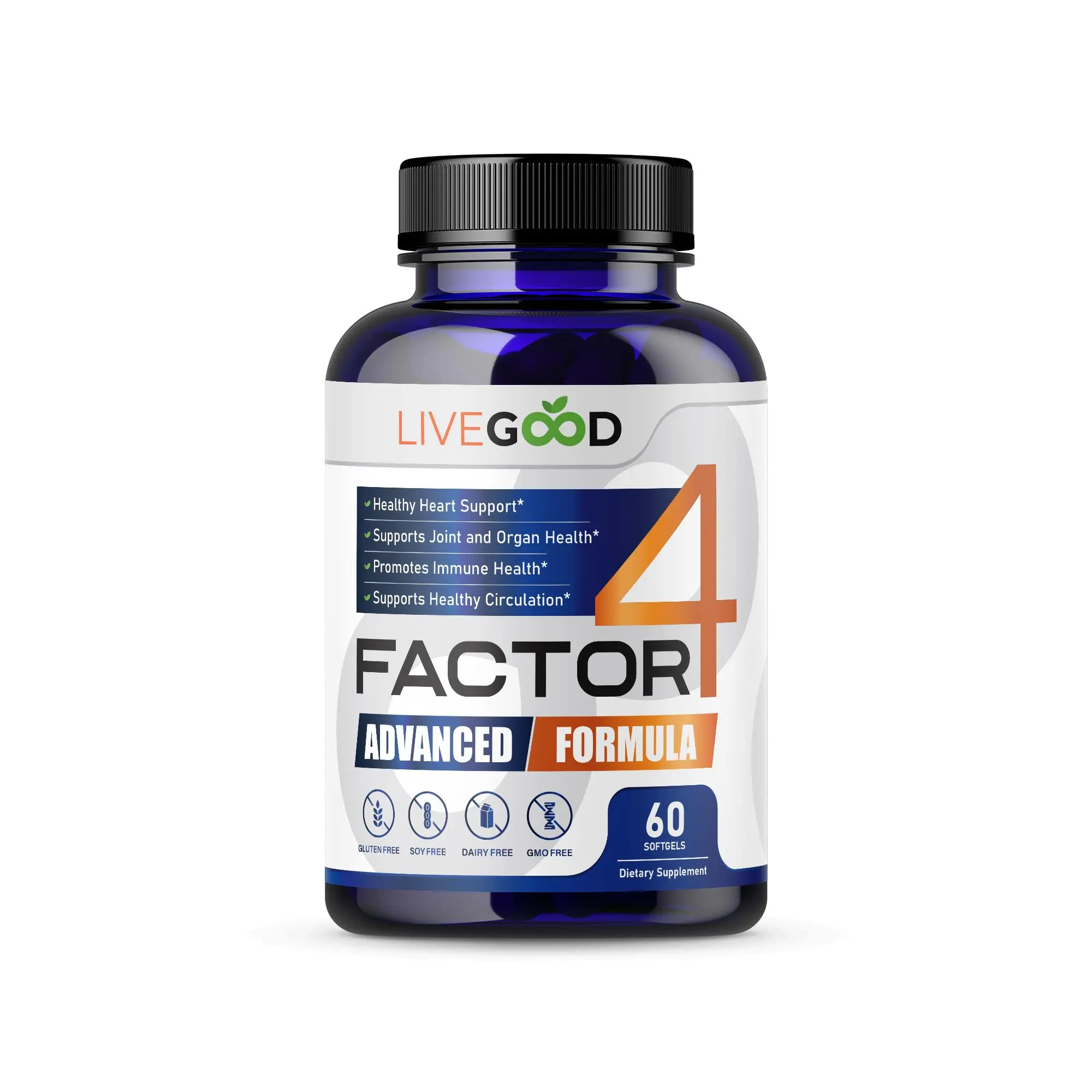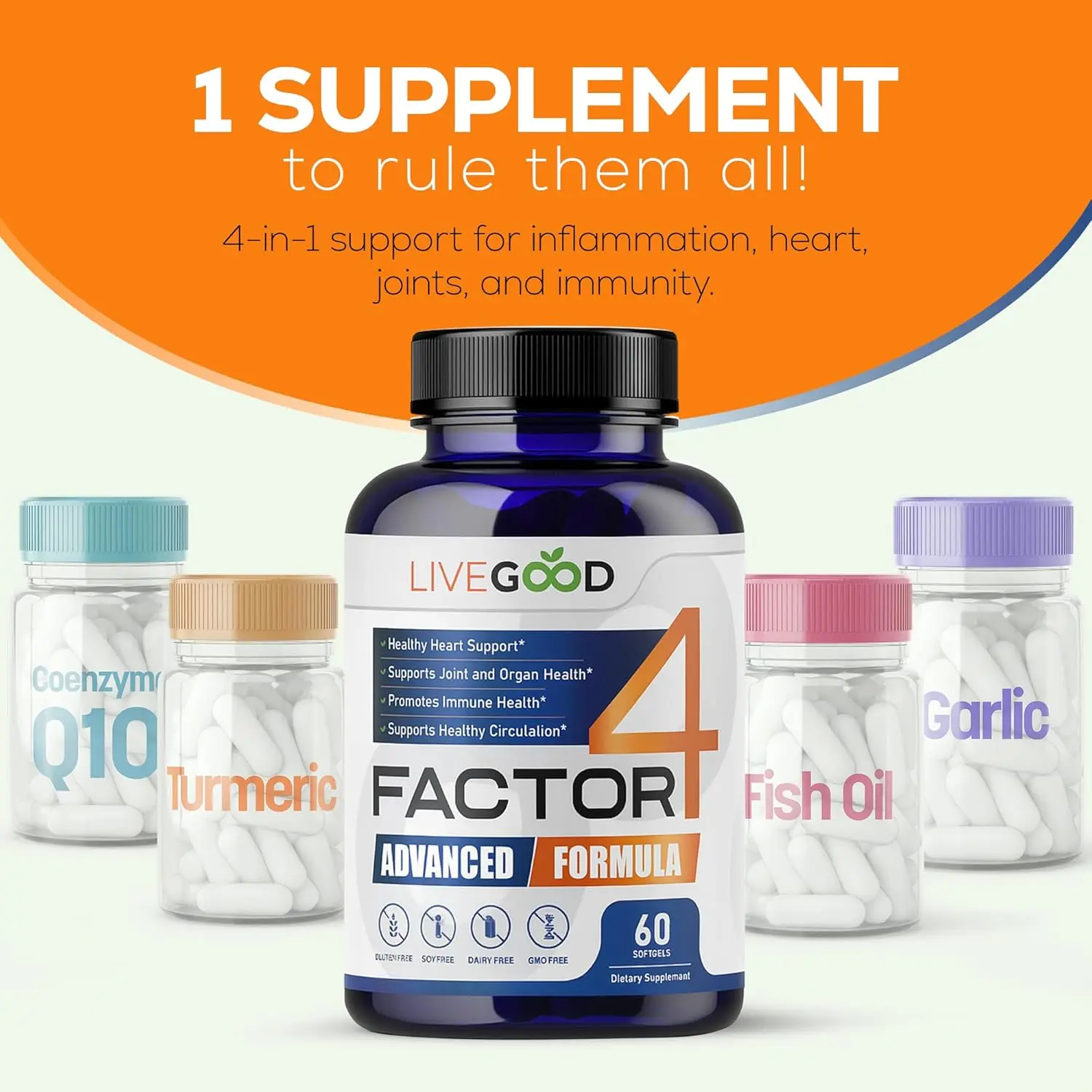 Fuel your body with a complete formula designed for total wellness. LiveGood Factor 4 combines Omega-3 fish oil (EPA & DHA), CoQ10, Turmeric, and Garlic — four powerful ingredients working together to support heart, brain, joint, and muscle function naturally.