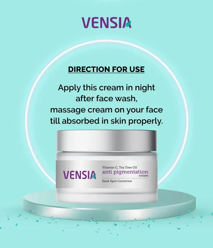 Conclusion:VENSIA Anti-pigmentation Cream is your targeted solution for dark spots, melasma, wrinkles, and blemishes. With its unique blend of natural ingredients, it reduces pigmentation, hydrates, and nourishes your skin, giving you a more youthful, even complexion.