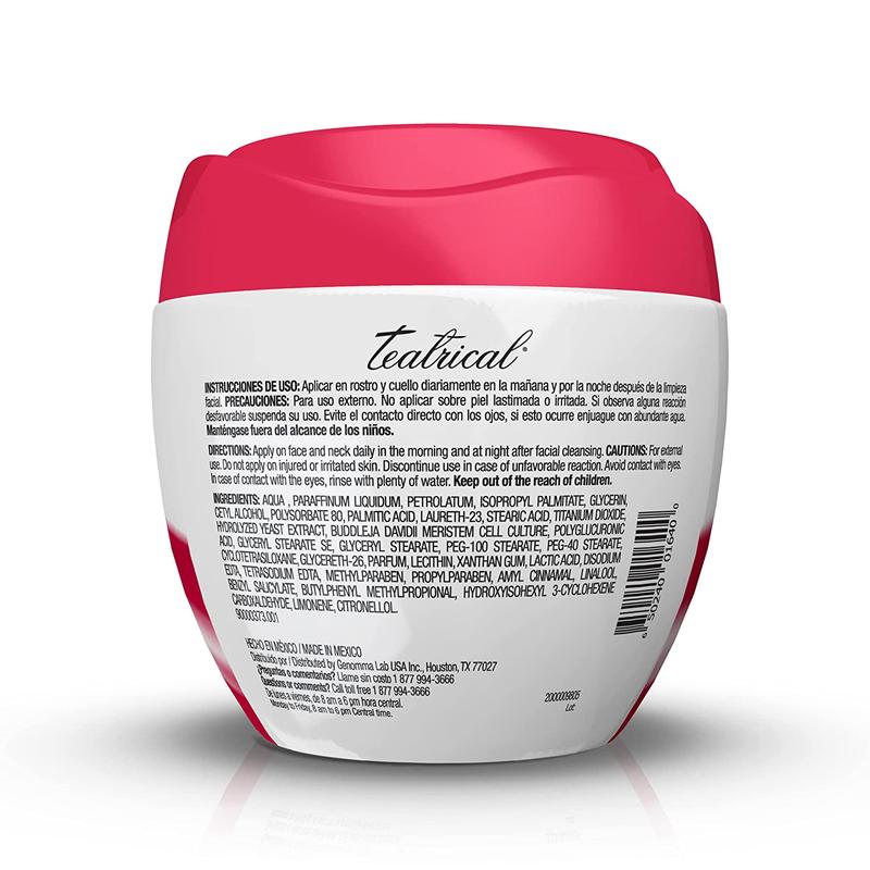 ·Anti Wrinkle Facial Cream: This anti aging cream helps reduce the appearance of wrinkles and expression lines to reveal a smoother and younger complexion scienceTry Them All: We carry a wide range of face care products to moisturize and revitalize your skin, including cleansers, anti-wrinkle creams, moisturizers, and tone correcting creamsNatural Skincare: Teatrical is an iconic Latin brand focused on attainable and natural skincare powered by stem cells of the Buddleja davidii flower