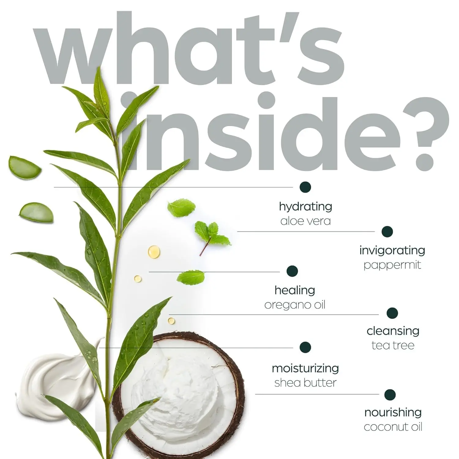 ·Tea Tree Oil: Known for its natural antibacterial and anti-inflammatory properties, tea tree oil helps to soothe and cleanse the skin.