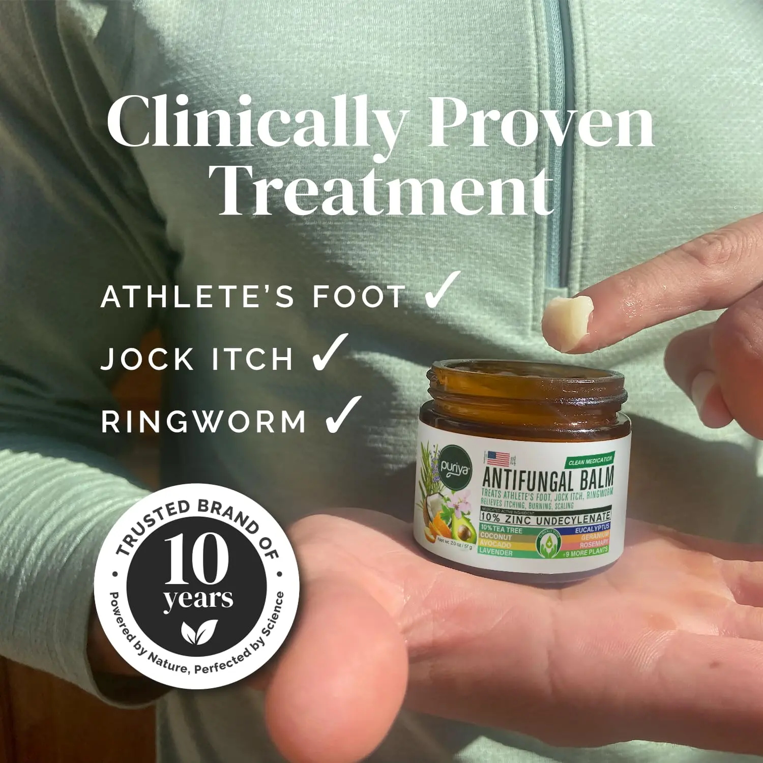 Fights fungus, hydrates dry skin, and protects your barrier. Non-greasy and absorbs fast, ideal for active lifestyles. Clean formula: no parabens, alcohols, or synthetic fragrance. Size: 57g (2 oz). Form: Thick balm, absorbs quickly. Scent: Light, natural from essential oils.