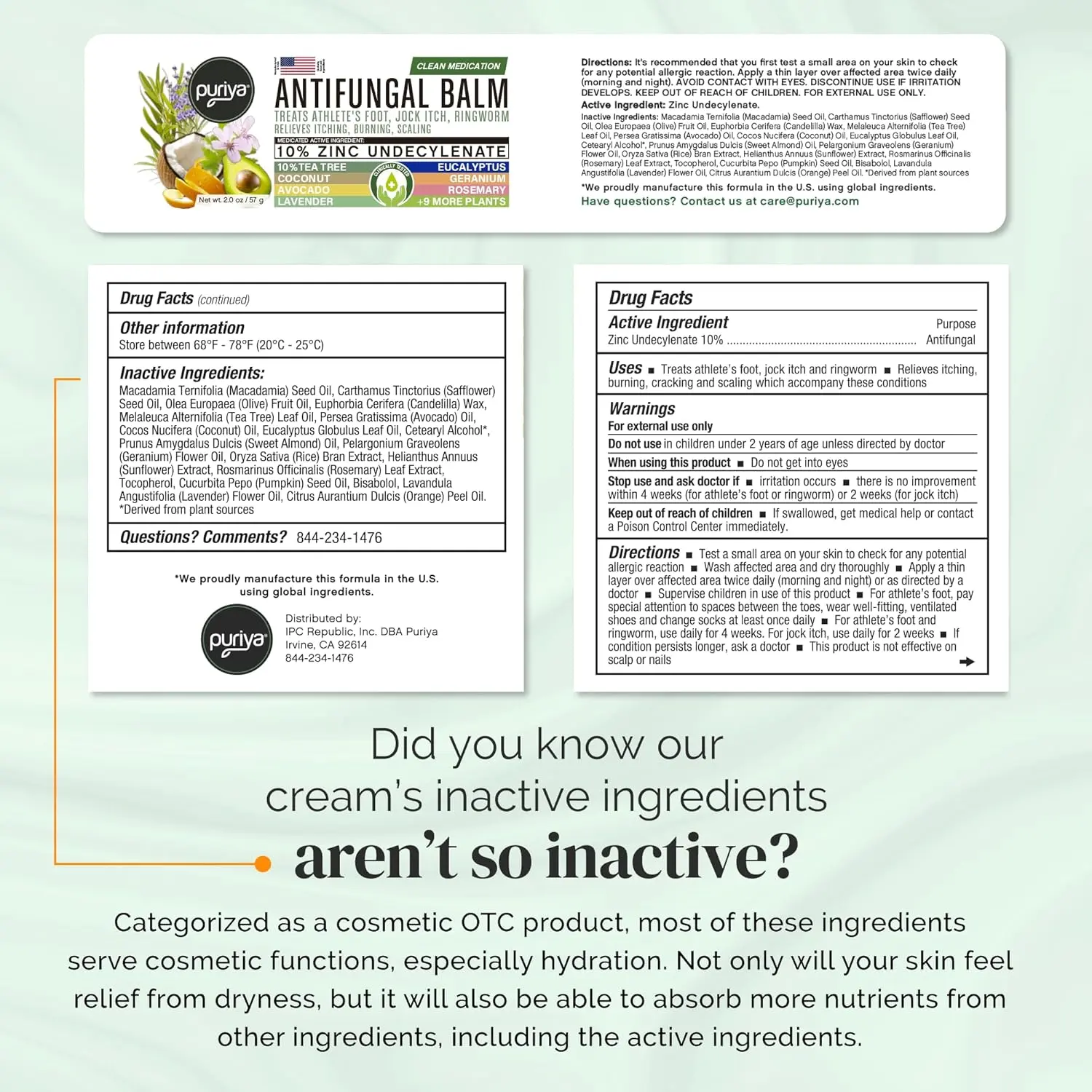 • Zinc Undecylenate (10%): Treats athlete’s foot, jock itch, and ringworm.