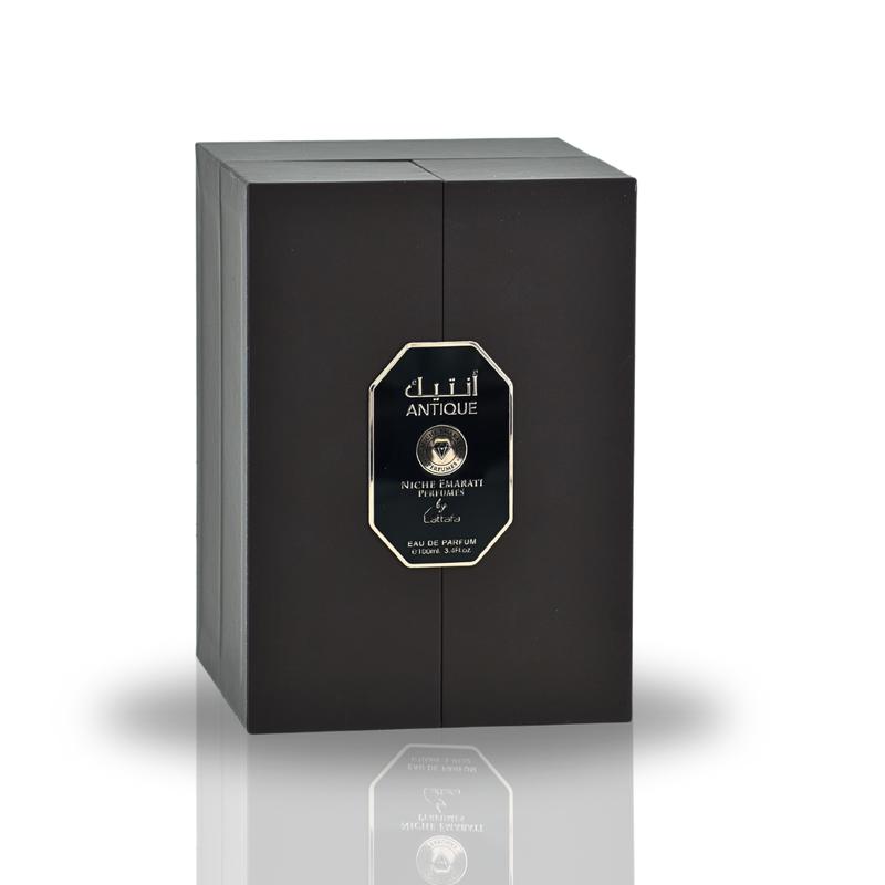 Niche Emarati Antique Eau De Parfum, a fragrance that takes you on a journey of sensory delight. This 100ml bottle encapsulates a symphony of scents that are both timeless and captivating, suitable for both men and women who appreciate the art of fine fragrance.