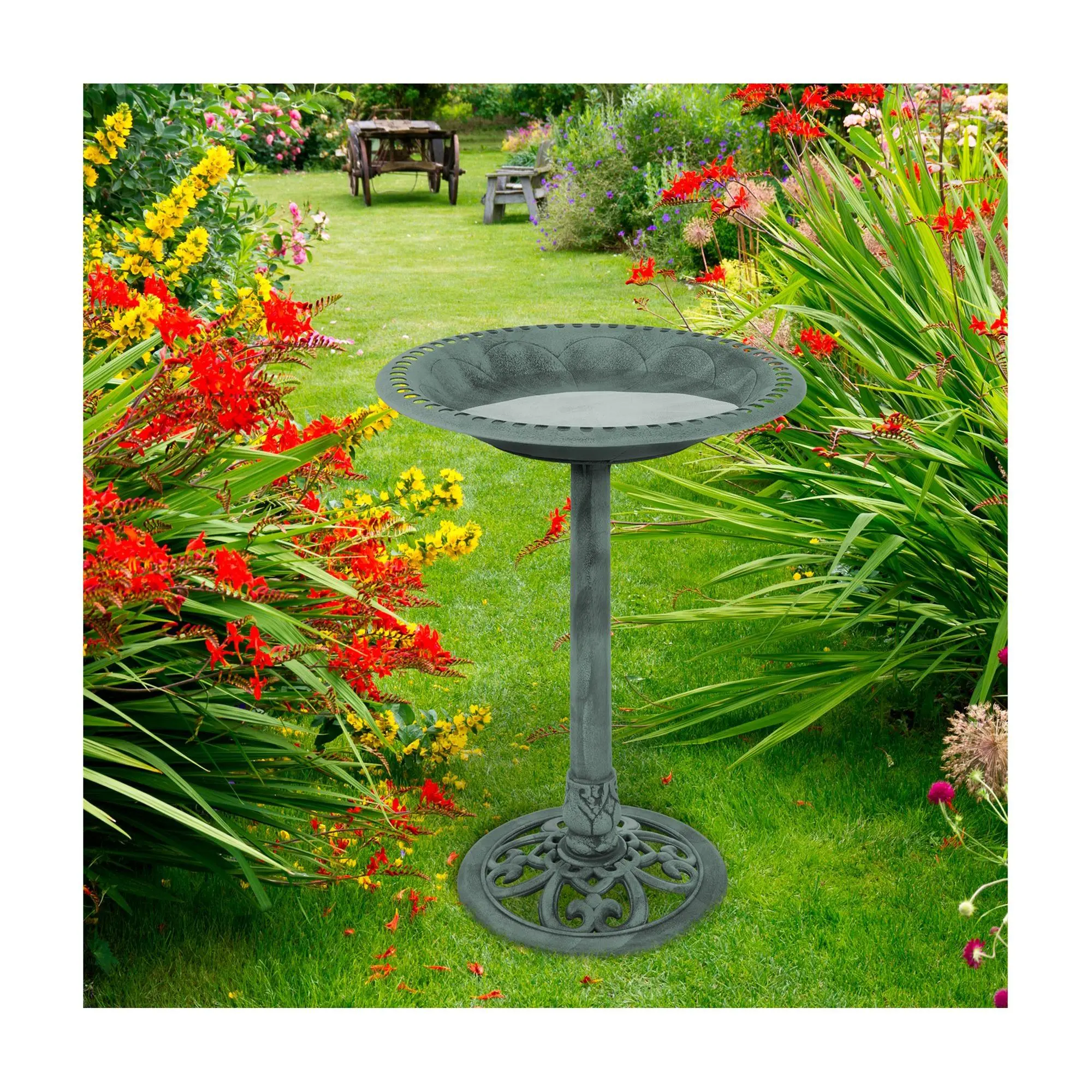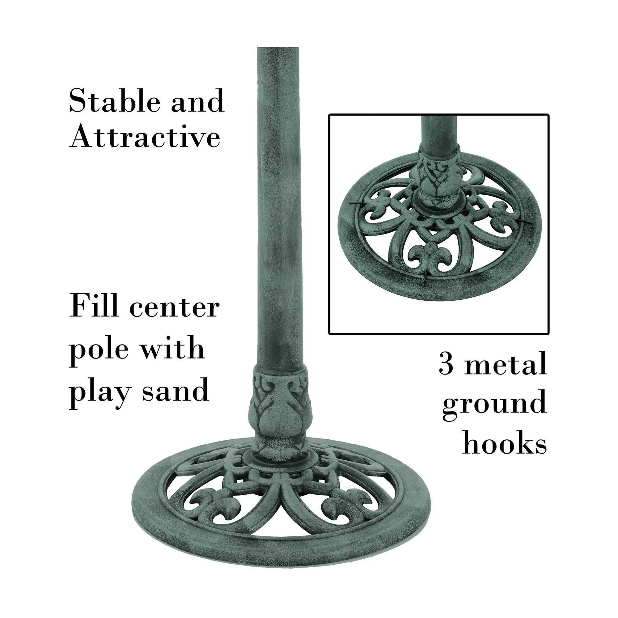 ·Includes pedestal birdbath and three metal ground hooks