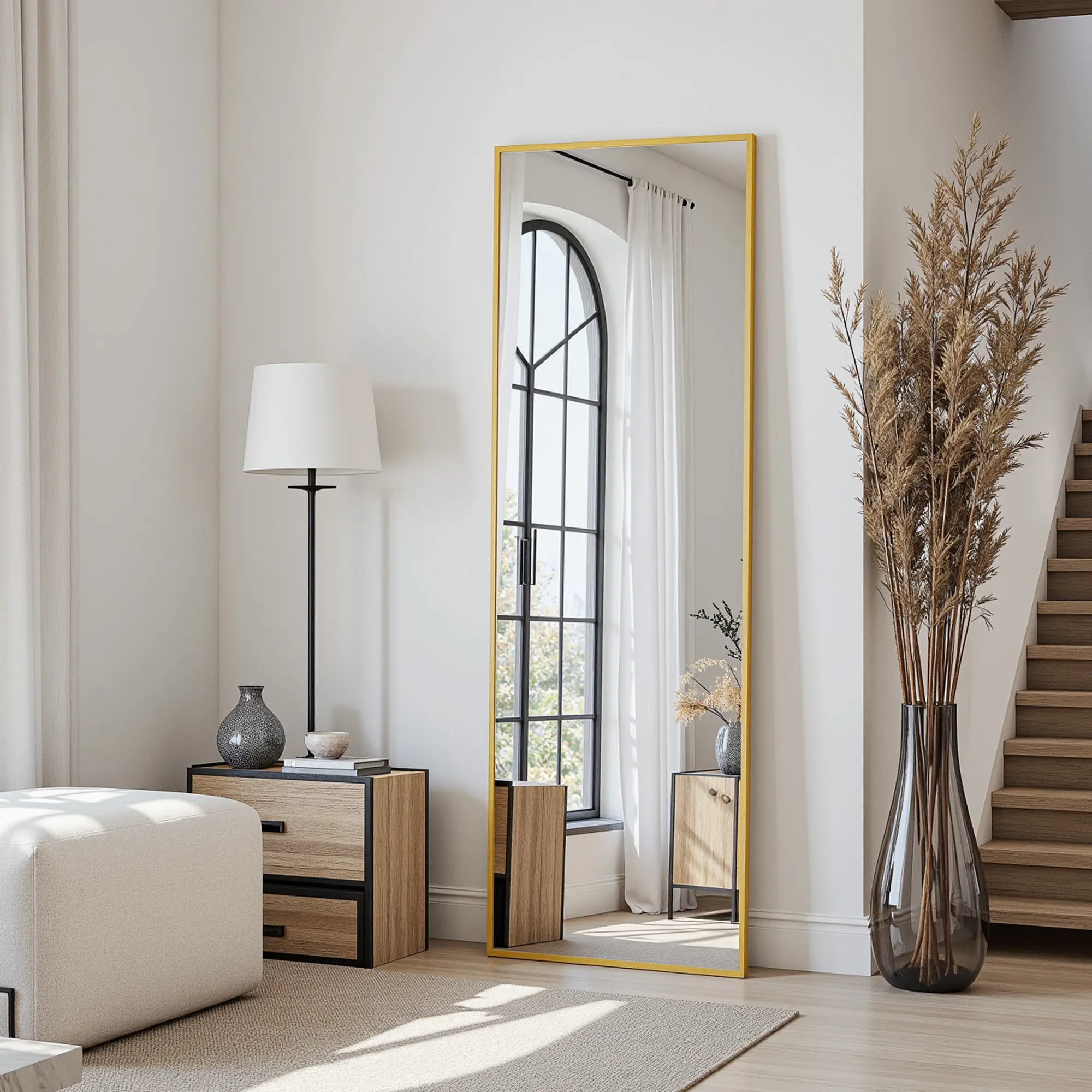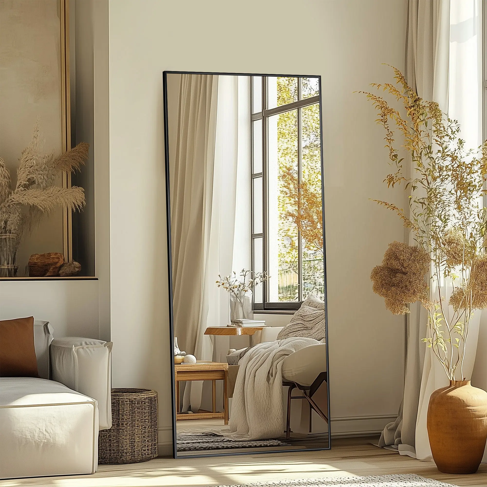 🔍 Mirror Full Length: This large mirror allows you to admire your entire body, ensuring you look your best from every angle. It enhances the beauty of your space, making it a standout feature.