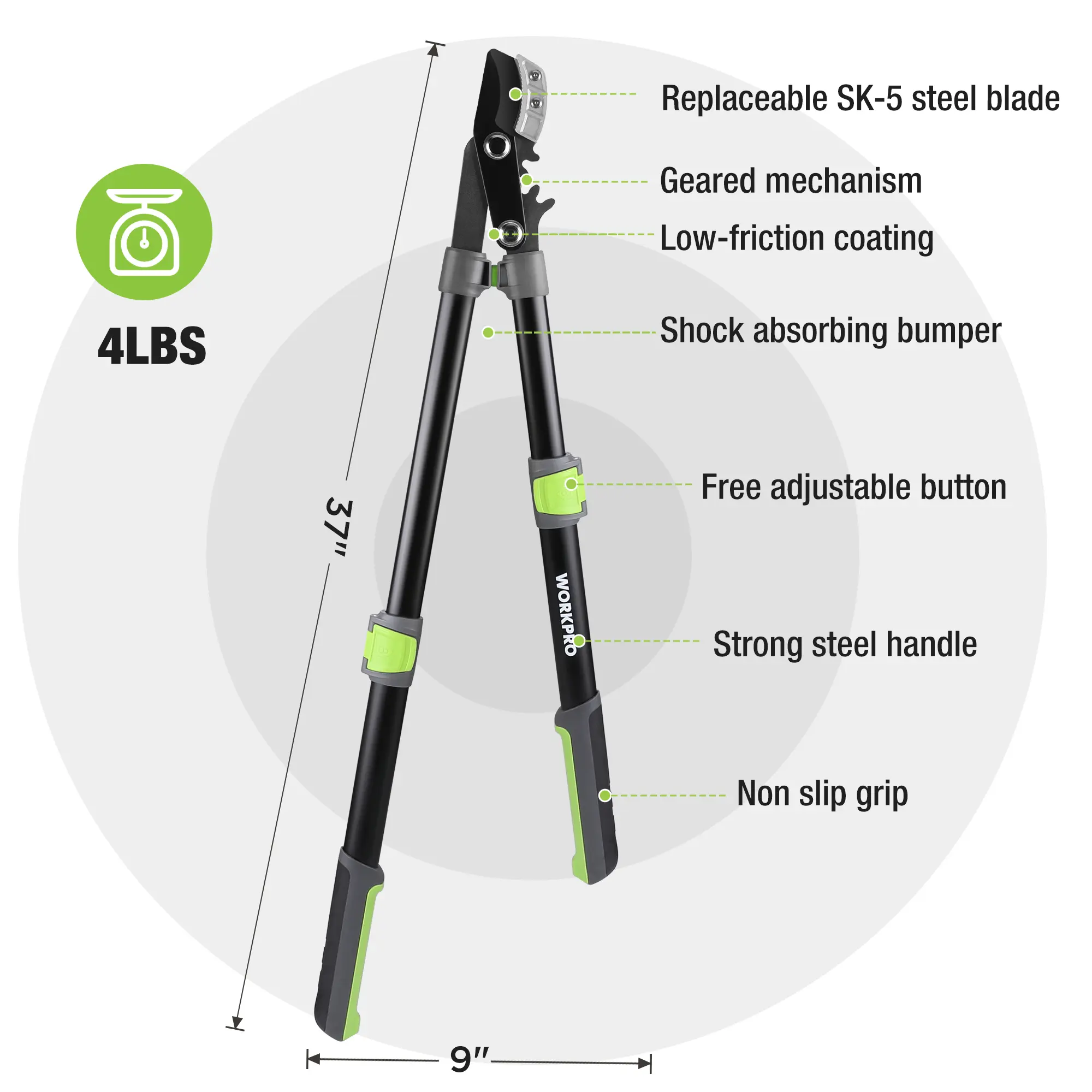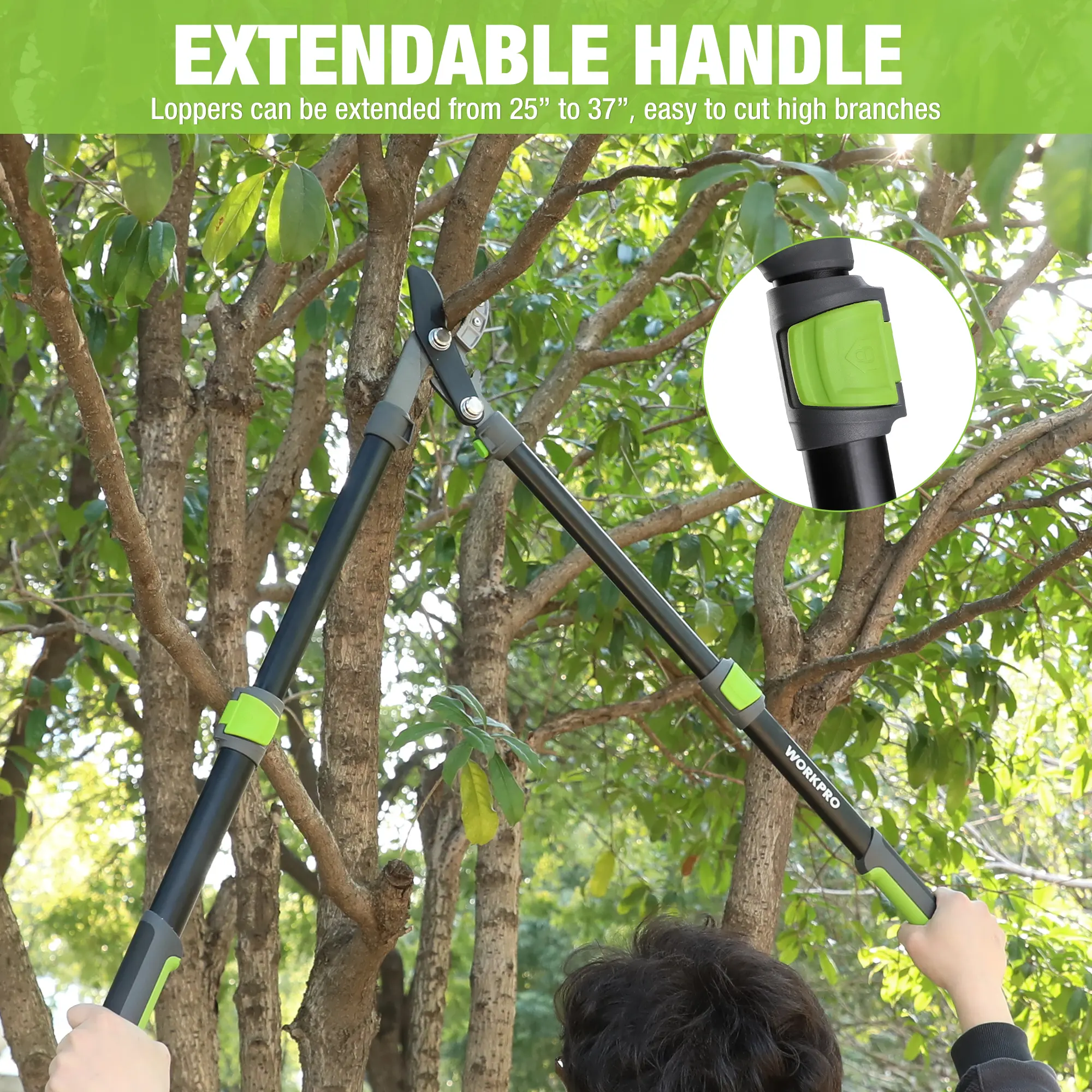 ·[EXTENDABLE HANDLE] - Loppers can be extended from 25" to 37", easy to cut high branches.Offer versatility in tacking various branches,whether you're maintaining your yard or shaping your garden.