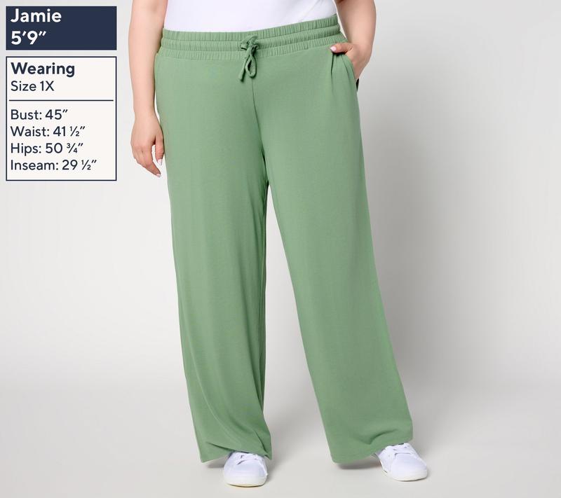 Fabrication: Knit. Features: Set of 1 jogger and 1 full length pant. Jogger: Encased elastic waistband with gathers and drawcord. Front slash pockets. Full Length: Straight leg pant with same pocket/WB. Fit: Semi-fitted, follows the lines of the body w/ added wearing ease. Jogger: Rise: At Waist. Leg Shape: Tapered. Inseam: 26-1/2". Ankle. Full Length: Rise: At Waist. Leg Shape: Straight. Inseam: 30". Care: MWCDC/ONCBWN/TDL/WADWLC/LIIN. COO: Imported. Season: (S) Content:57% cotton, 38% modal, 5% spandex.