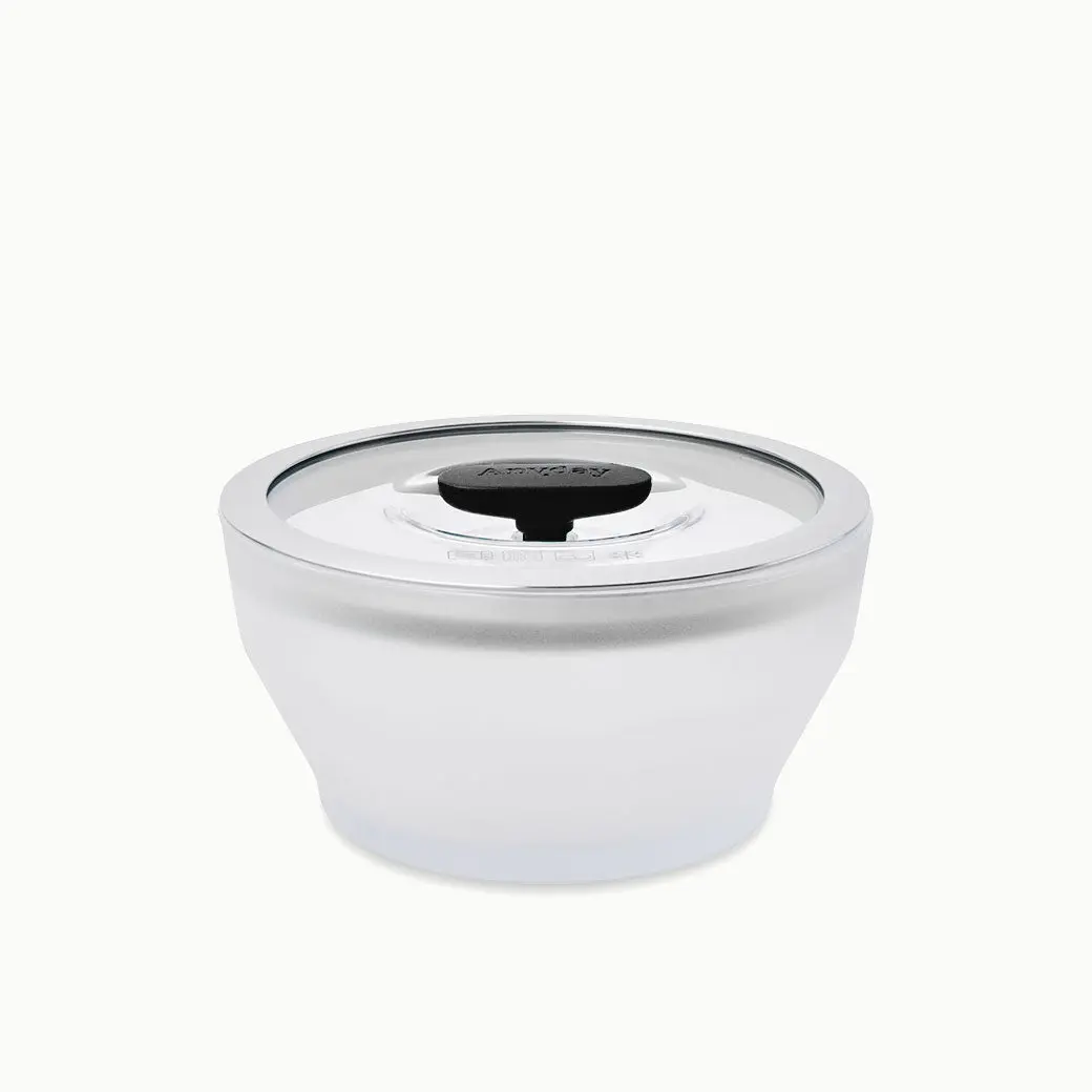 This is one of my favorite sizes to use. For veggies, soup. It’s a perfect size for one person, one bowl meals or storing leftovers. Love the frosted glass. There bowls have changed the way I cook!