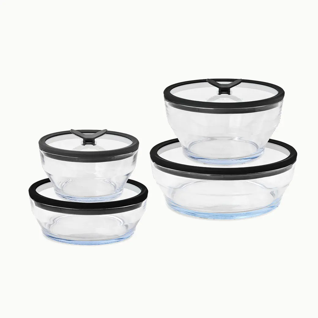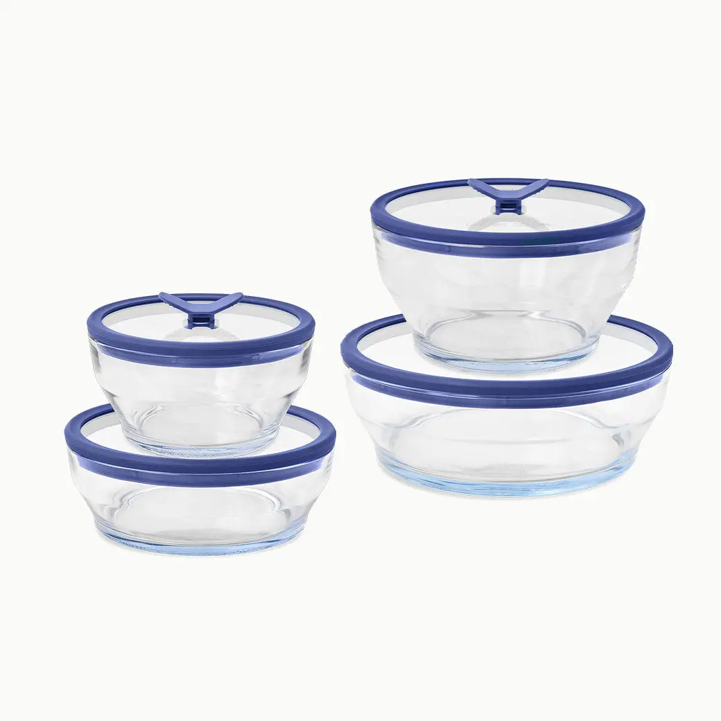 sizes are good, love lids that are tight yet solid and is glass with silicone multifunction - stackable. got rid of pyrex and plastic lids