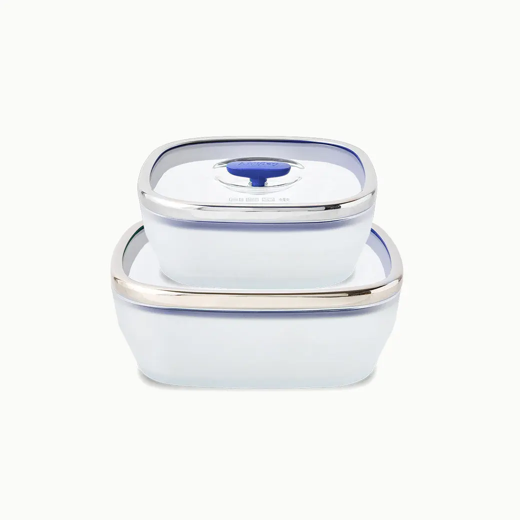 Build your plastic-free kitchen with our premium frosted glass collection in a space-saving square shape. Designed as versatile microwave cookware, these durable frosted glass dishes also double as food storage containers with vented glass lids. Ideal for cooking bacon, baking casseroles, and heating up frozen food, these dishes will be the most-used tools in your kitchen. Each lid in this set is reinforced with a microwave-safe stainless steel rim that will stand the test of time.