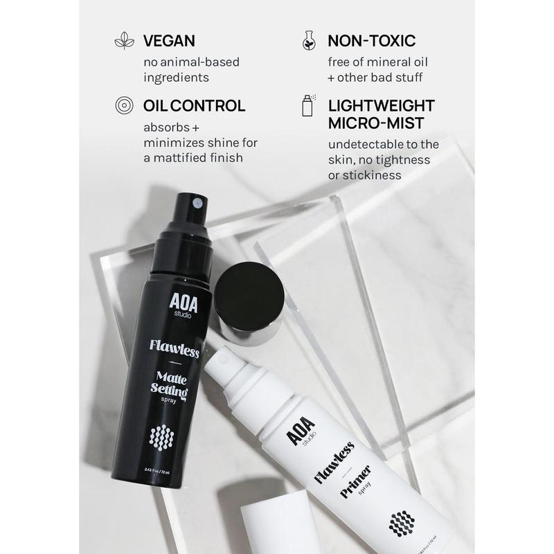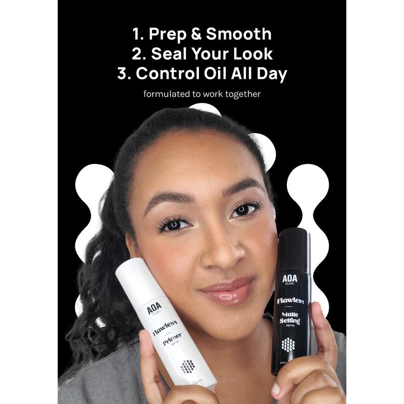 this primer works great ! this is my first time trying a spray primer and iām loving it ! i like to use before and after my aoa cream foundation and it lasts all day