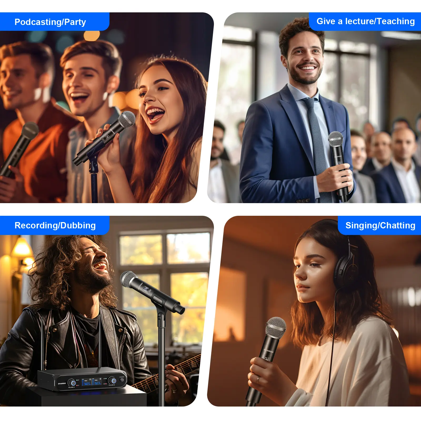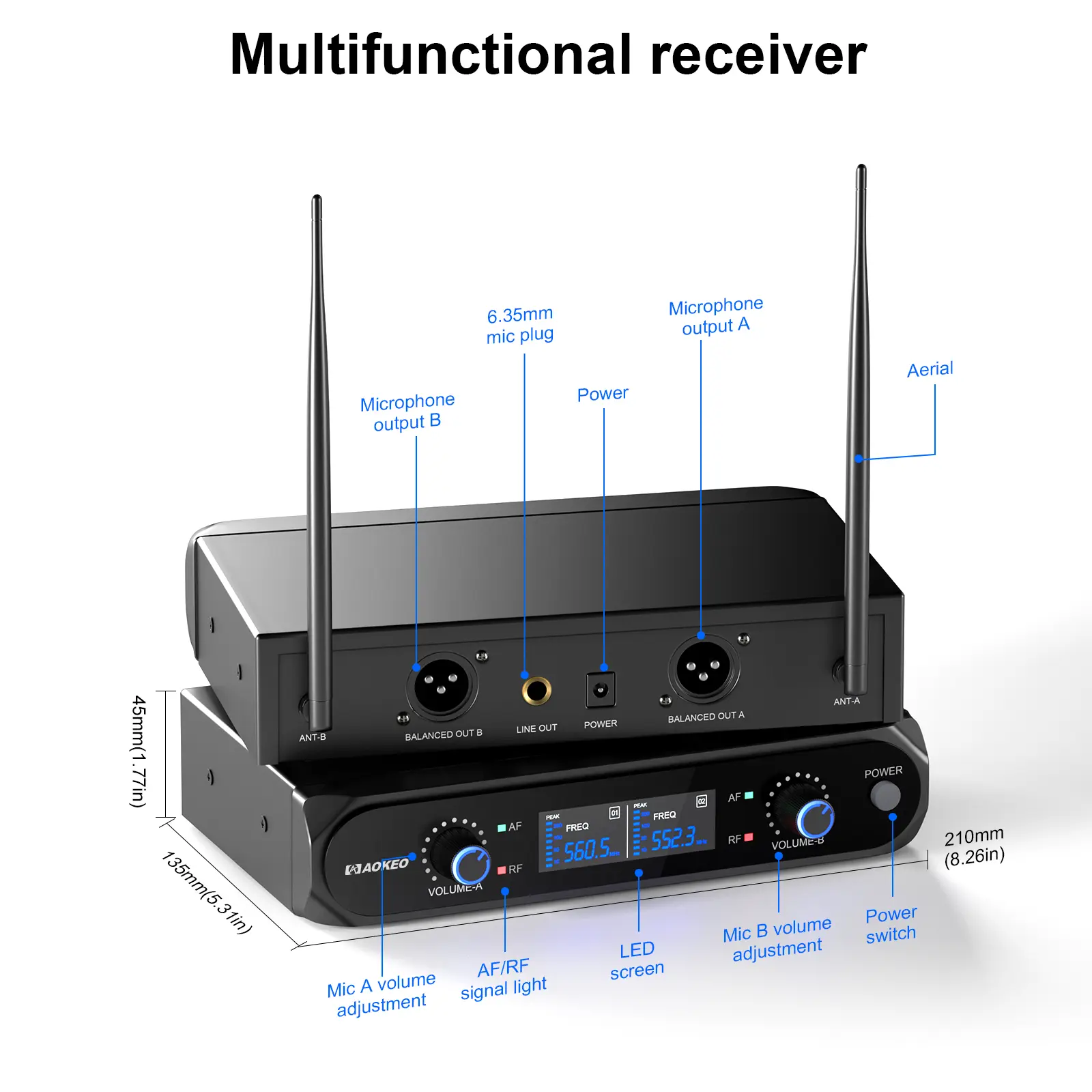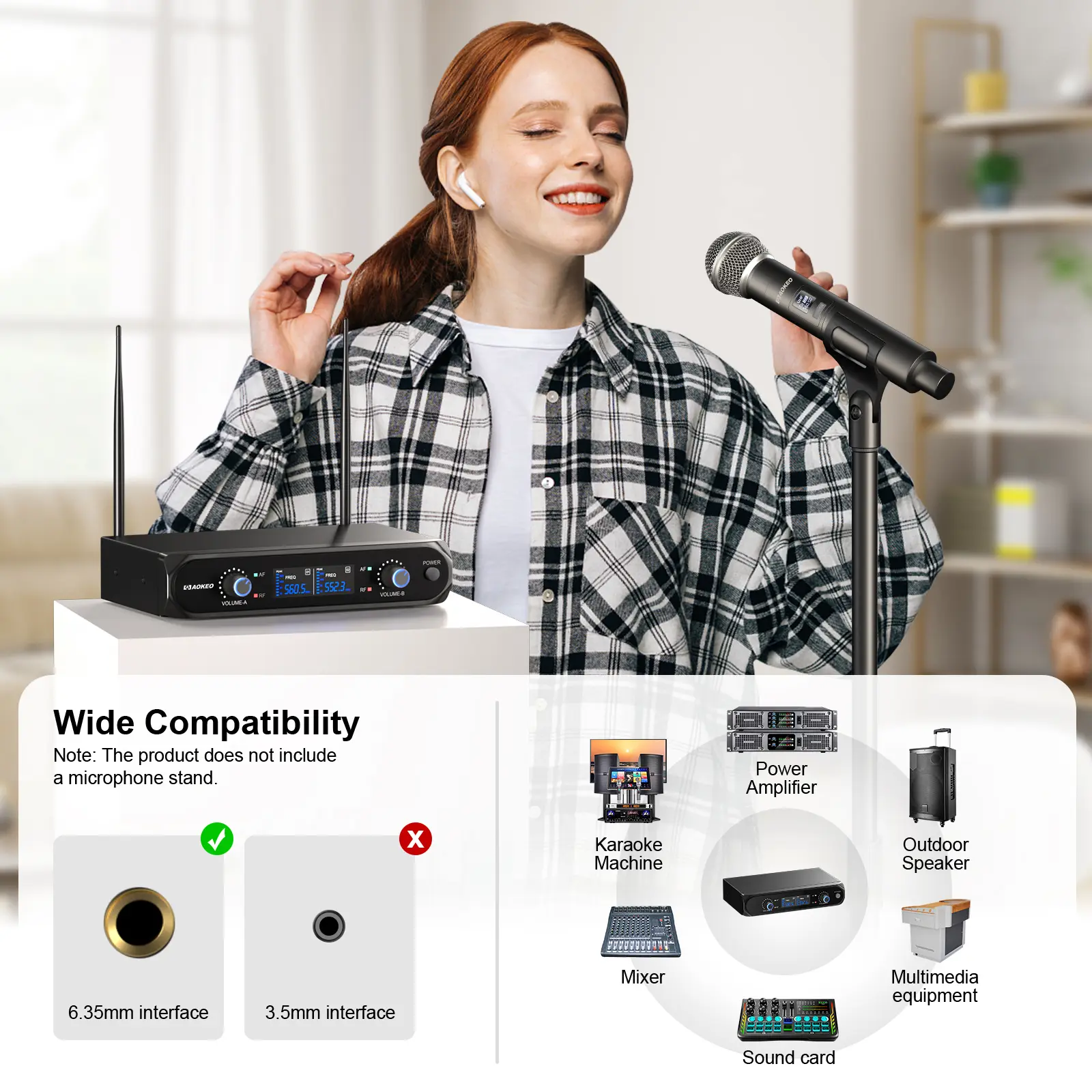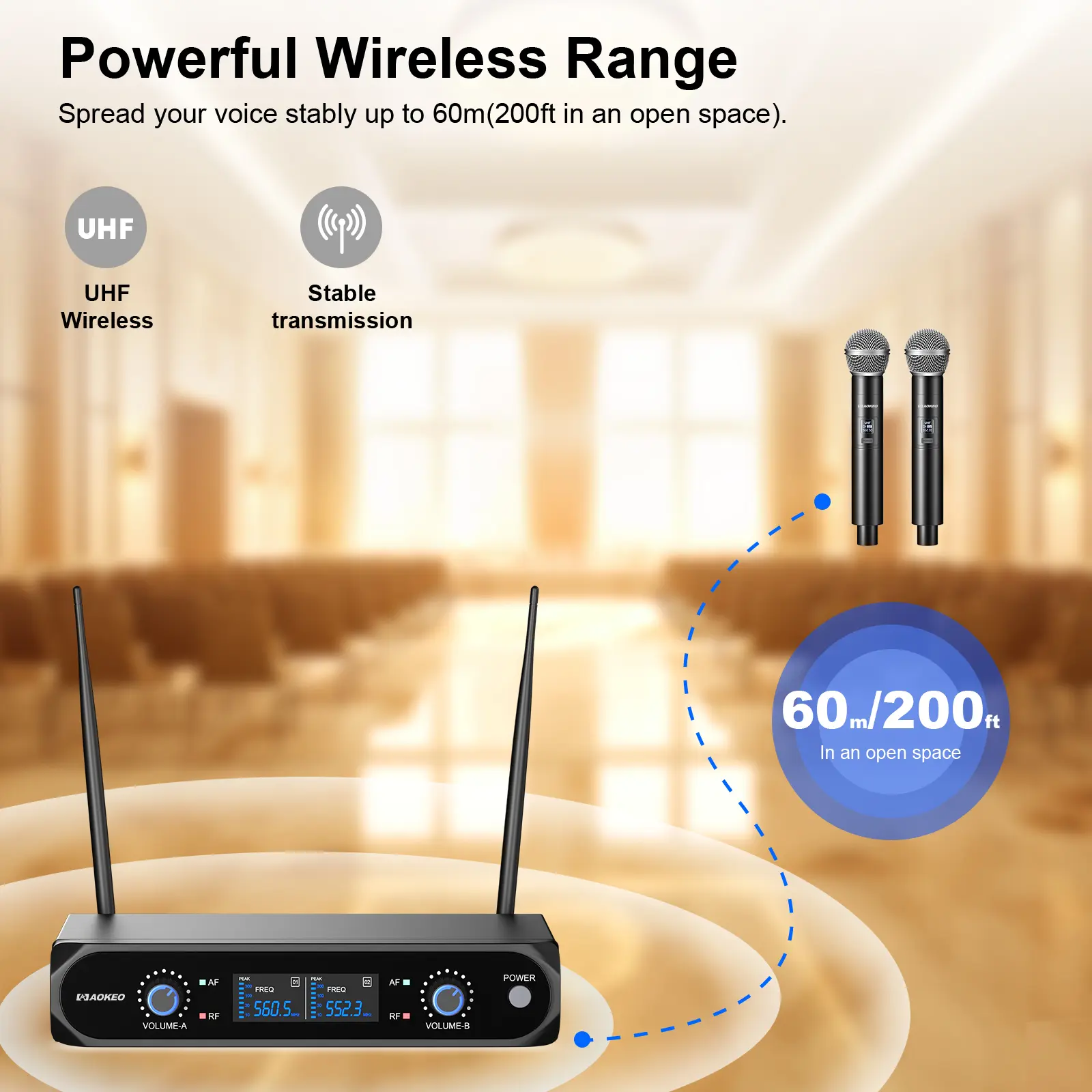 Imagine rocking your next karaoke night or church service with crystal-clear sound that reaches every corner of the room. The Aokeo V200 Wireless Microphone System makes that happen with its 100ft range and automatic noise reduction, so your voice and instruments come through crisp and clear. Its rugged metal body and mesh head with a blowout prevention sponge mean it’s built to last through countless performances. Setting up is a breeze—just pop in AA batteries, turn it on, and you’re connected. Plus, each microphone features its own volume knob, letting you fine-tune your sound on the fly. Whether you’re leading a meeting, DJing, or singing your heart out, this system’s DSP digital chip and cardioid polar pattern ensure your voice is captured accurately without annoying feedback. The package includes two handheld dynamic wireless microphones and a sturdy carrying case for easy transport. Note: microphone stands and XLR cables aren’t included, and a 3.5mm adapter is needed for mobile devices. Ready to elevate your sound? Grab the Aokeo V200 and amplify your performance with ease!