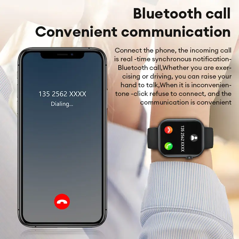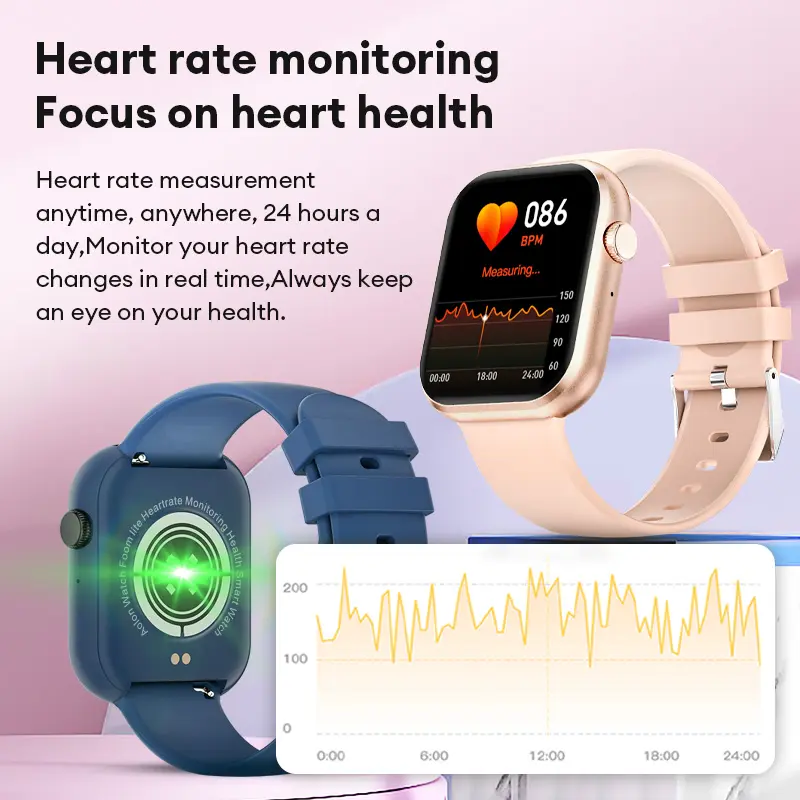 Smart watch has many practical tools such as alarm clock, stopwatch, music controller, weather, sedentary reminder, adjustable brightness, find your phone, etc. to meet your daily use. Support blood oxygen monitoring. Monitoring throughout the day, automatically and accurately track your heart rate and sleep data. Real-time analysis of your health status and sleep quality.
