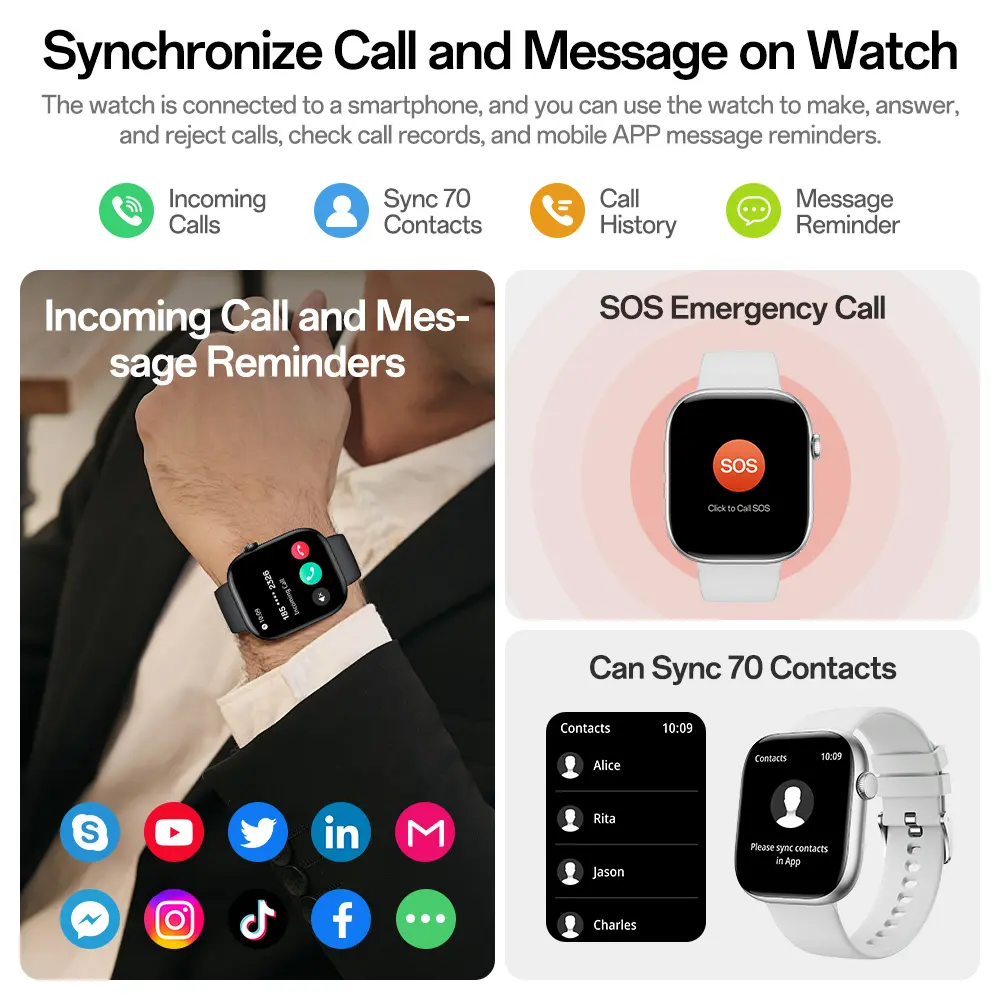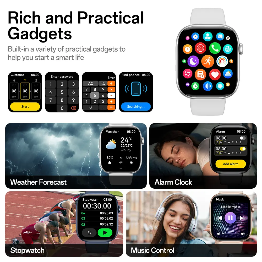 Don't let water hold you back! With IP68 water resistance, this watch laughs off rain showers, sweat during intense workouts, and even accidental splashes while washing hands. Built to keep up with your active lifestyle, it's ready for any adventure you throw its way.