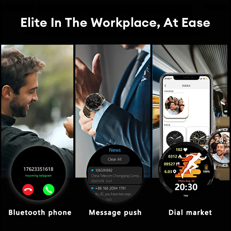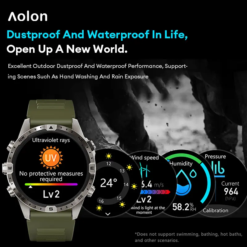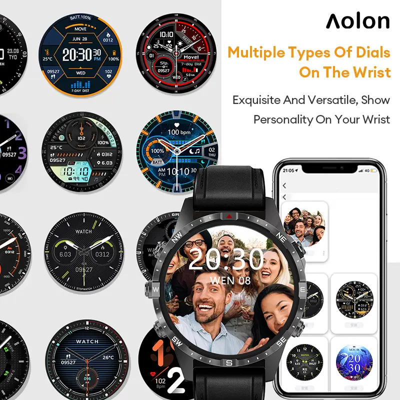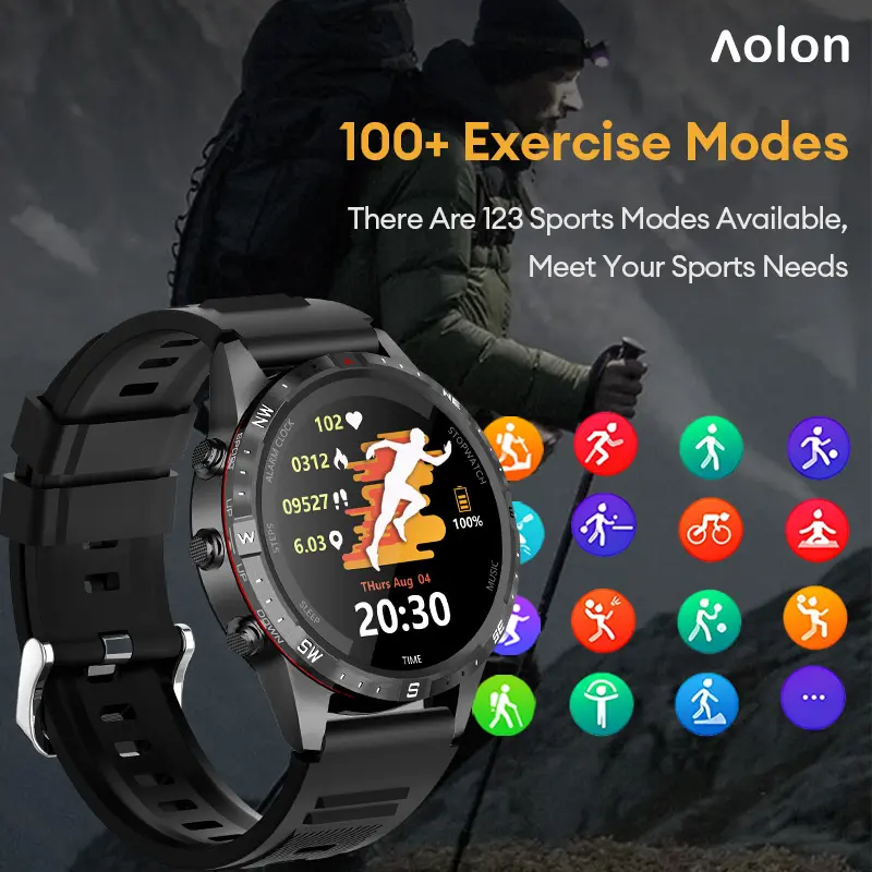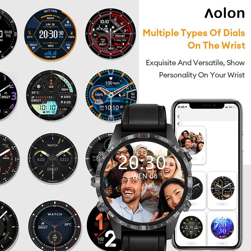 Aolon GT5 Pro Smartwatch with 1.6-inch HD display, multifunctional fitness tracking, waterproof design, black wearable device, Bluetooth calling, designed for men.