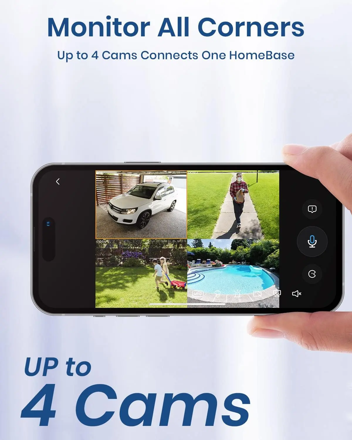 ·Support up to 4 cameras' video viewed on one screen, not missing any corner.