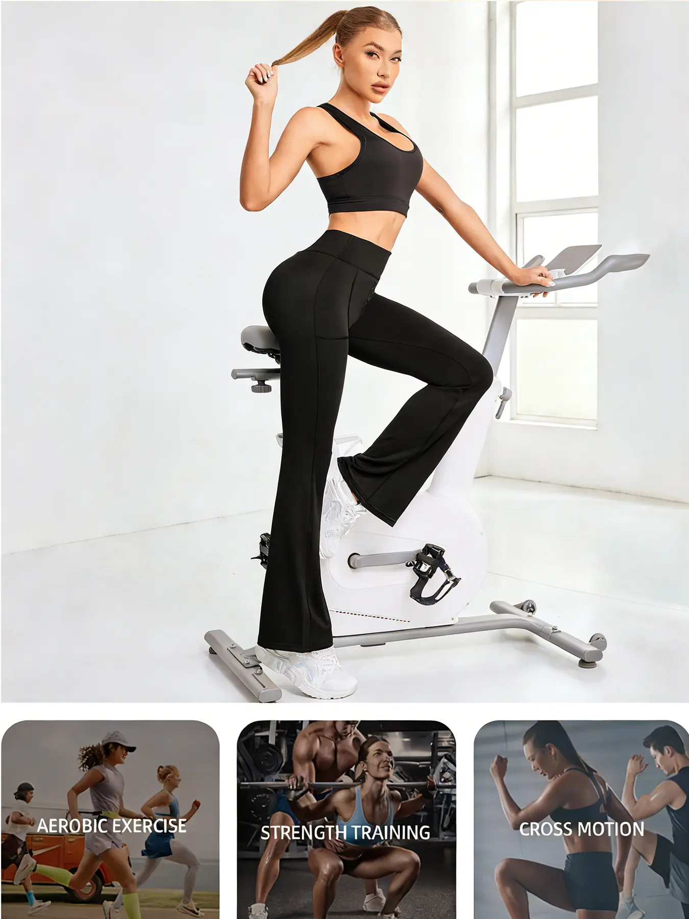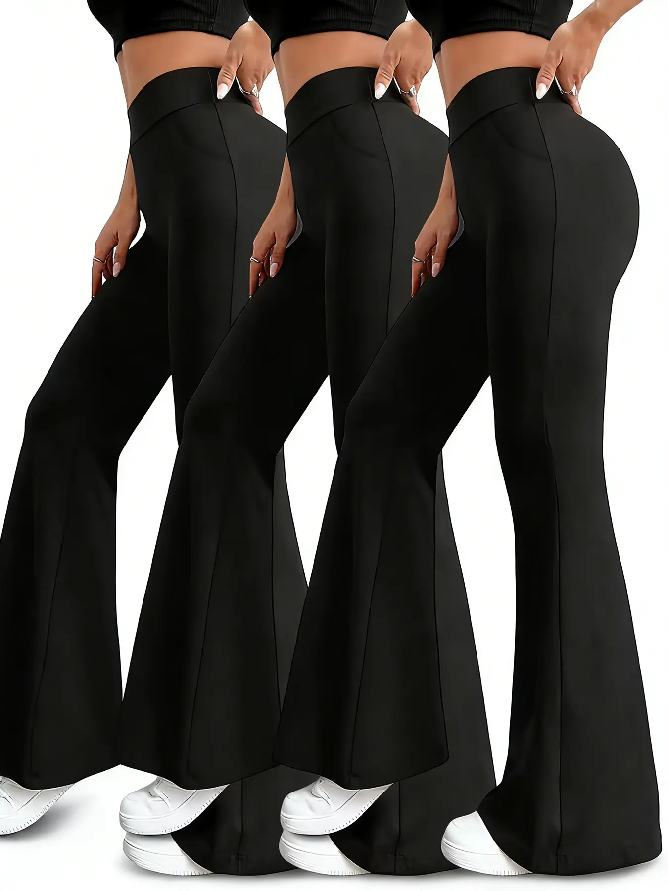 3-Pack Black High Waist Flared Leggings, Yoga & Pilates Flare Pants, Comfortable Stretchy Bell-Bottoms, Slim Fit Versatile Trousers For All Seasons SpringStatements#pants #yoga #fashon