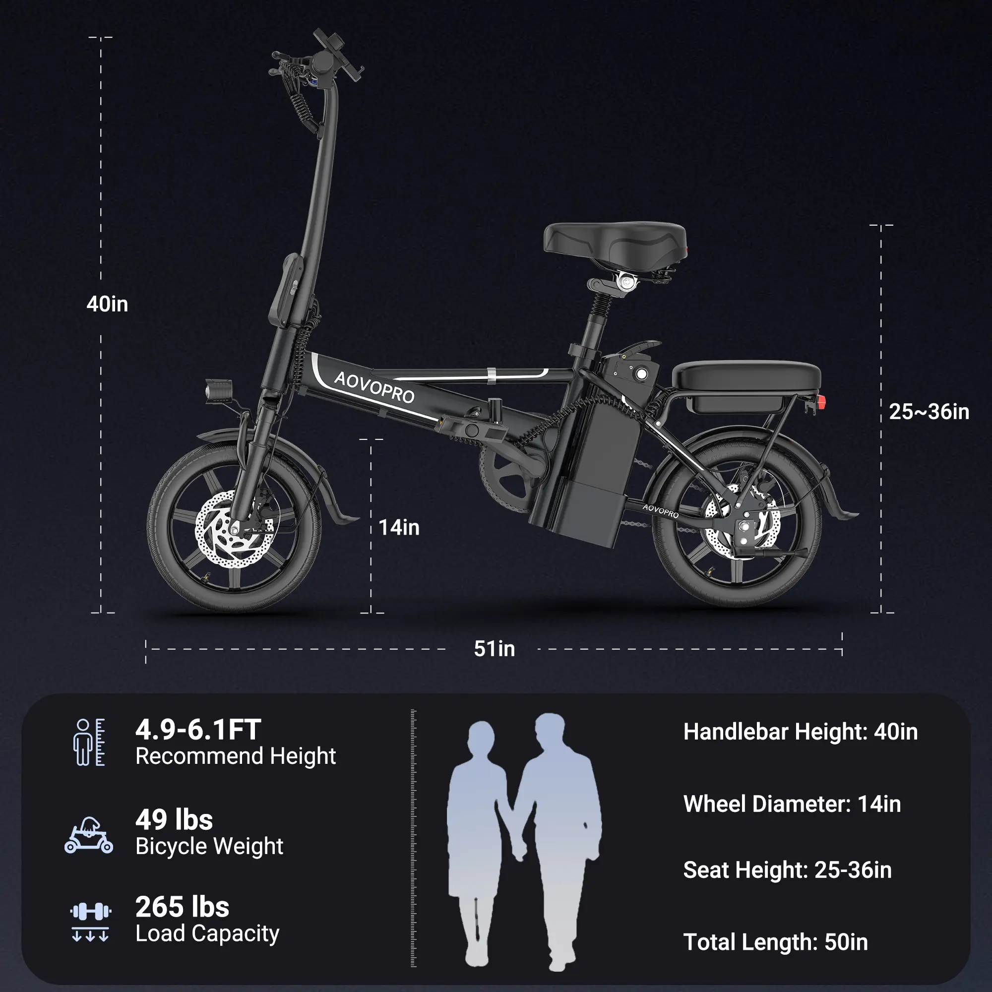 This e-bike folds down super small—just 27.6 × 27.6 × 23.3 inches—and weighs only 50 lbs. You can easily lift it or throw it in your car. Plus, there’s a phone holder for easy navigation, a USB port to charge your phone on the go, and even a password lock to keep your bike safe.