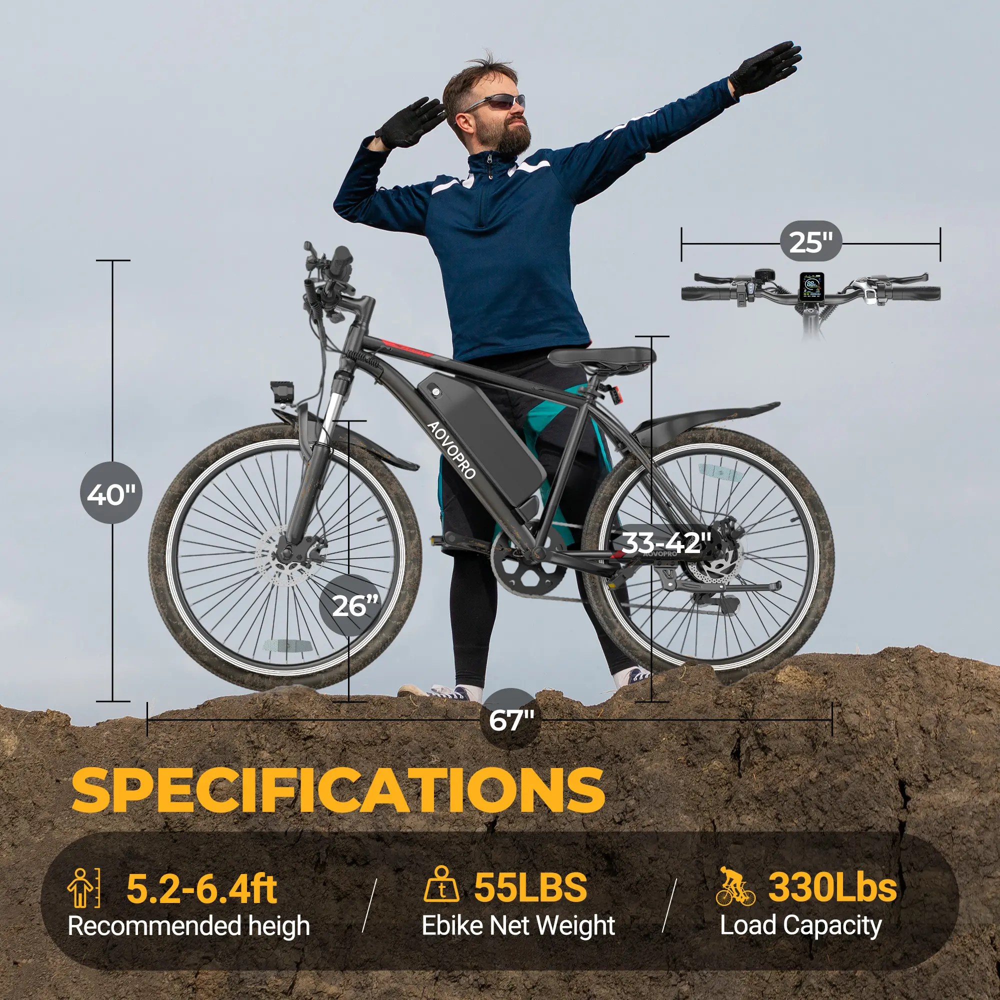 AOVOPRO & ladped Mountain E-Bike 350W Motor