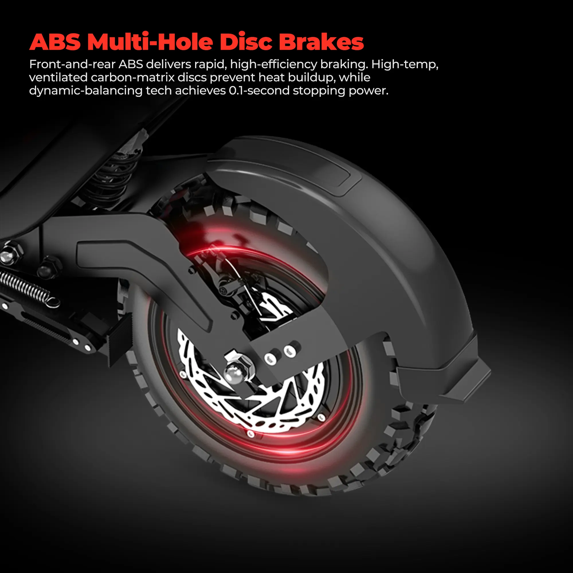 ·Front and rear disc brakes with high-temp ventilated carbon fiber discs for instant braking and heat resistance.
