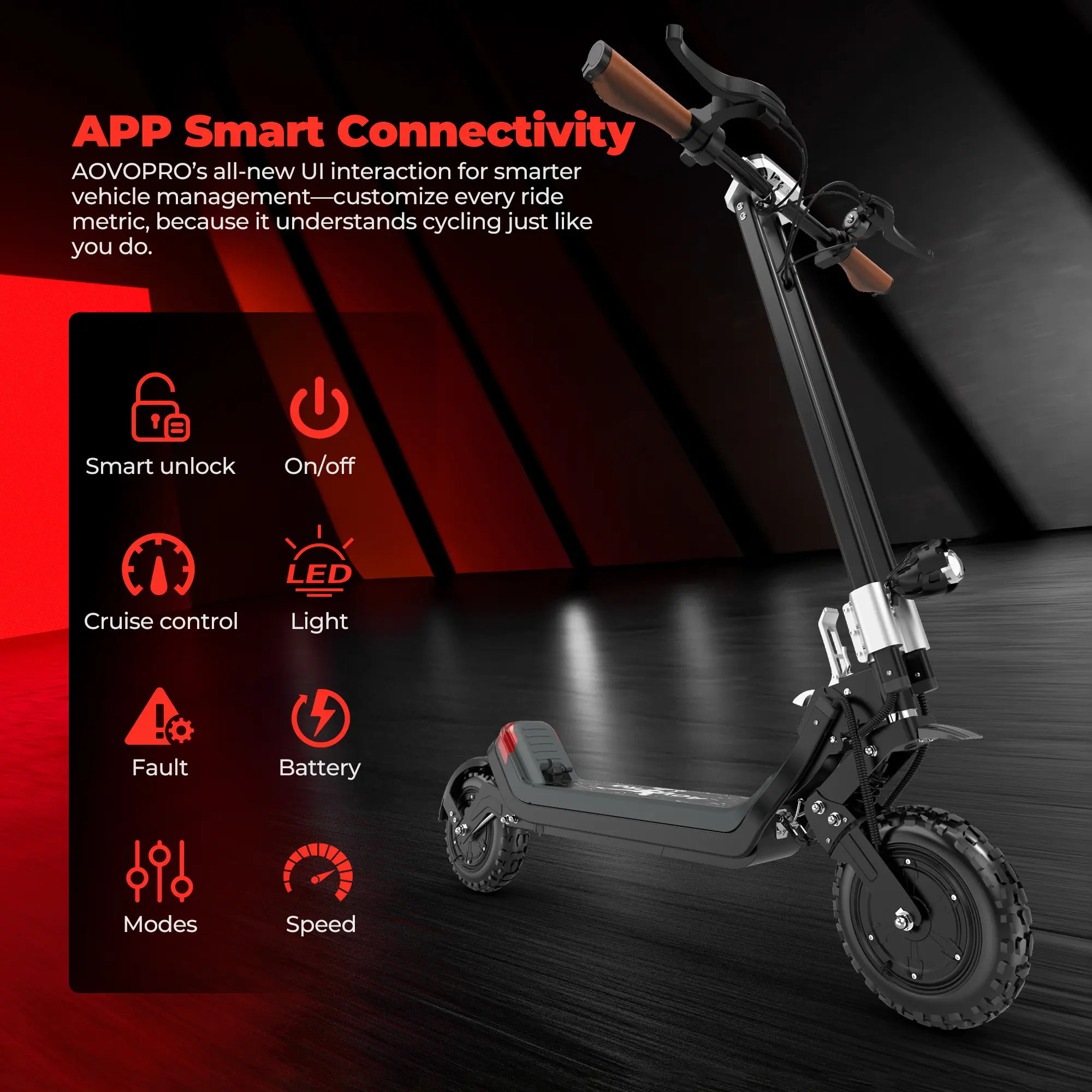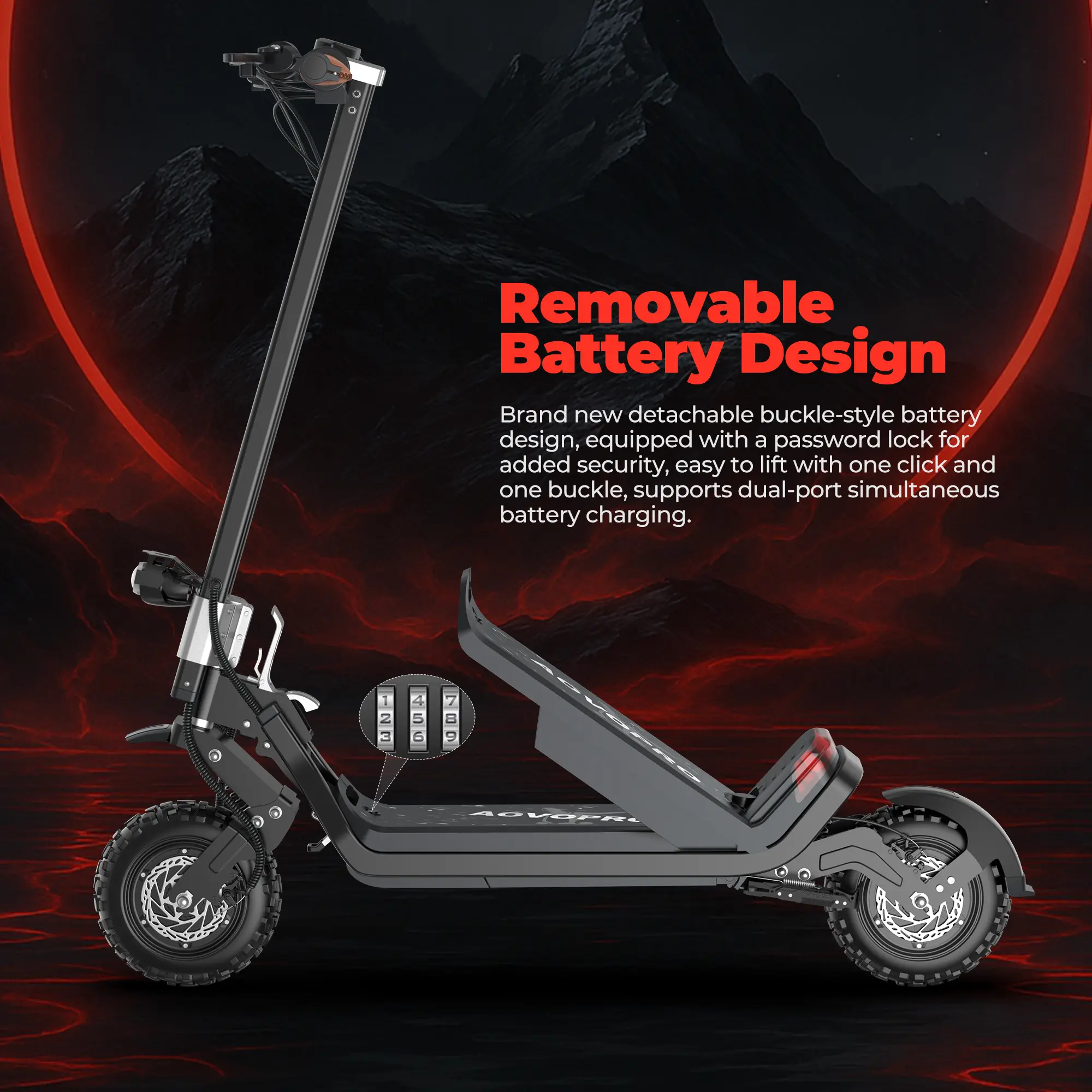 AOVOPRO Electric Scooter | Detachable Battery Design, Password Lock Protection, Dual-Port Simultaneous Charging