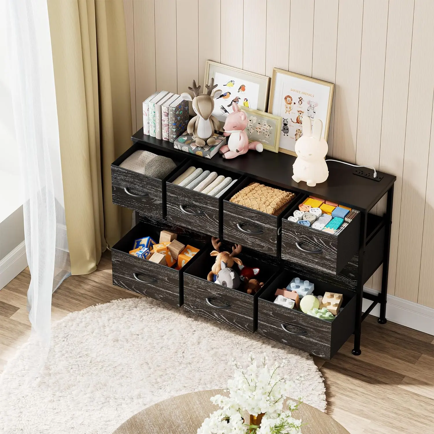 Material:Steel Frame、Wood Top、Non-Woven Fabric Dresser