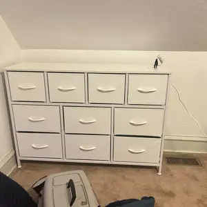 [Diversified Storage Space]: Ten drawers with two different sizes can meet your needs for categorized storage of various daily necessities. 9.84'' L x 11.81" W x 8.26" H medium-sized drawer can store 20+ books or 10+ cosmetic products and so on; 13.38'' L x 11.81" W x 8.26" H large drawer can store 10+ pieces of bedding such as sheets, duvet covers, blankets, etc.
